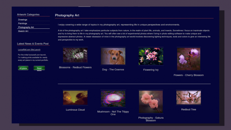 With a variety of mediums and styles available, I hope that anyone looking on luciusrafi.com will find something that suites their style/taste.
