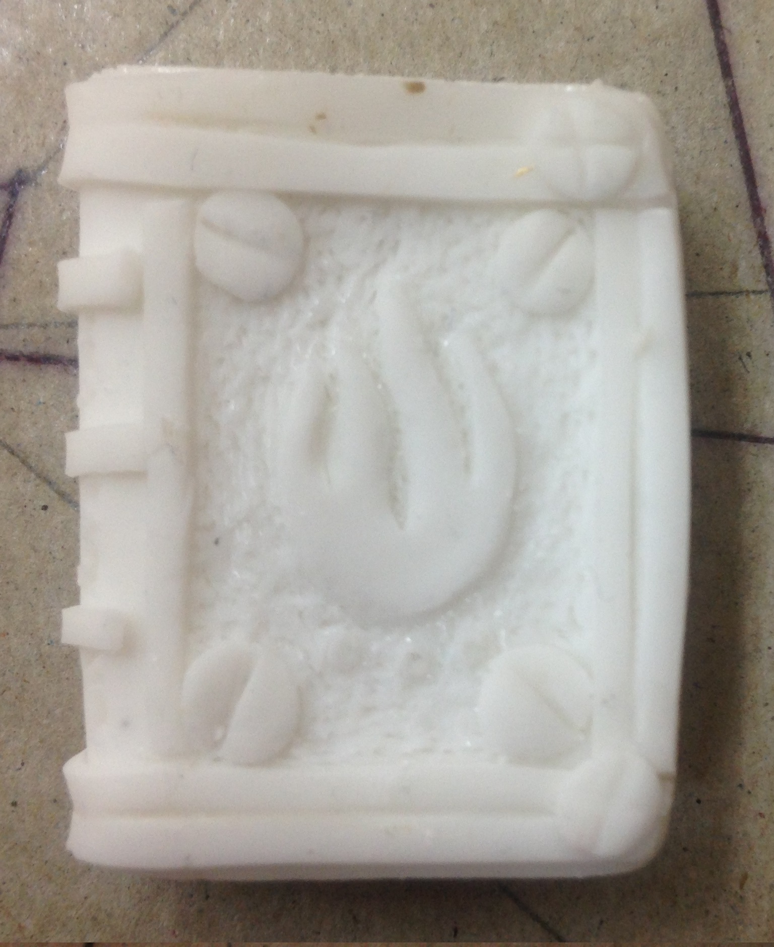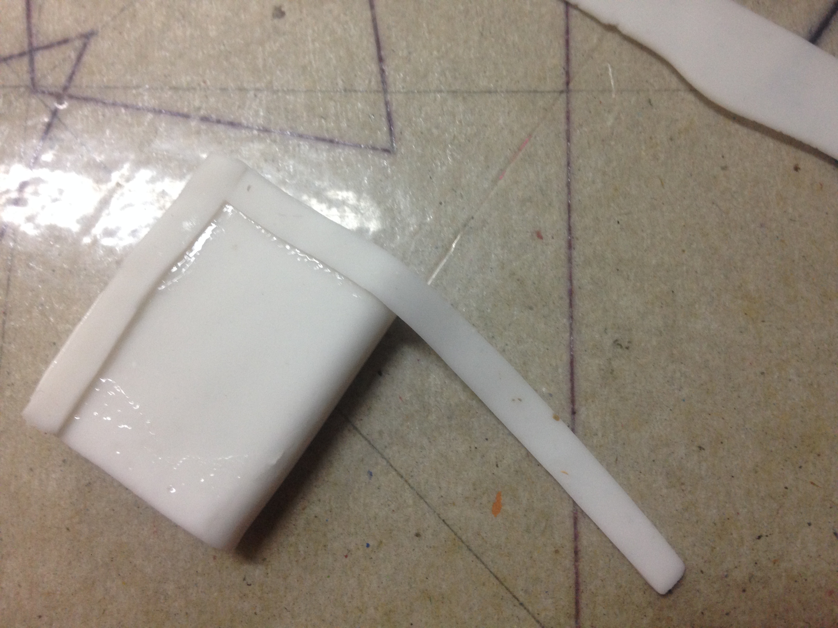 Cut strips of Flexible Mass of 2 and 3 millimeters wide, with the help of the stilettos fix the strips to the edges and around the grimoire, then take a circle of raisins and with the fingers flatten, then with the help of the X-acto cut so that there is a kind of flame which you will fix with the White Pega.