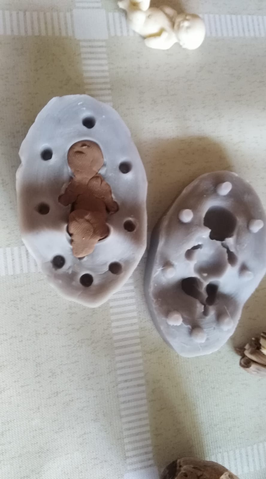 To obtain the skin tone that we are looking for, it is necessary to knead well to achieve a uniform tone and we proceed to fill the two parts of the mold.