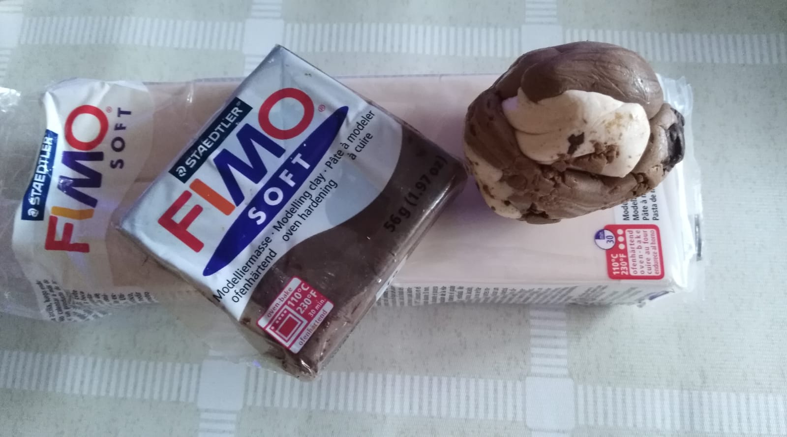First we take the desired color of fimo for the baby, we can mix colors