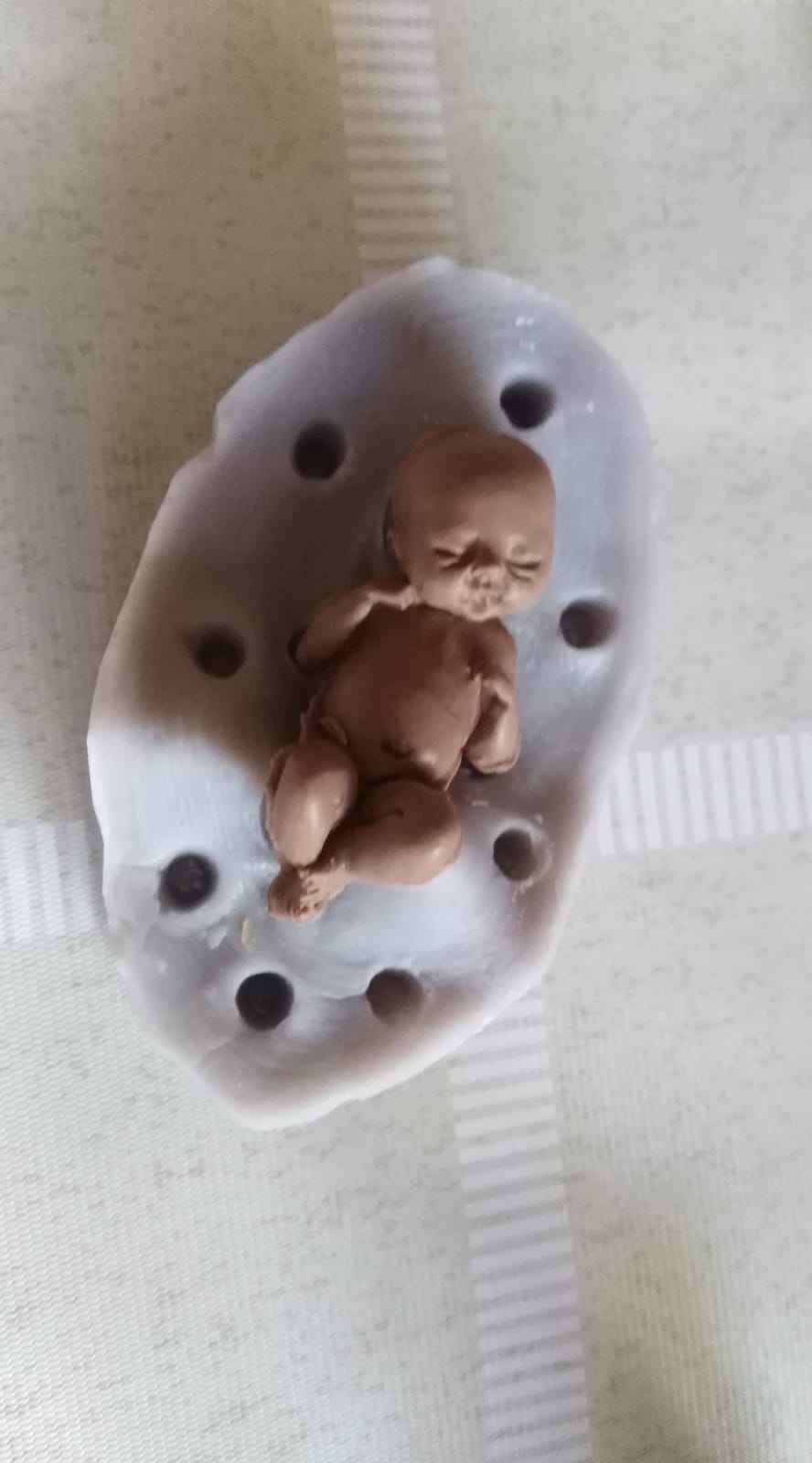 We remove the baby and carefully remove the burr.