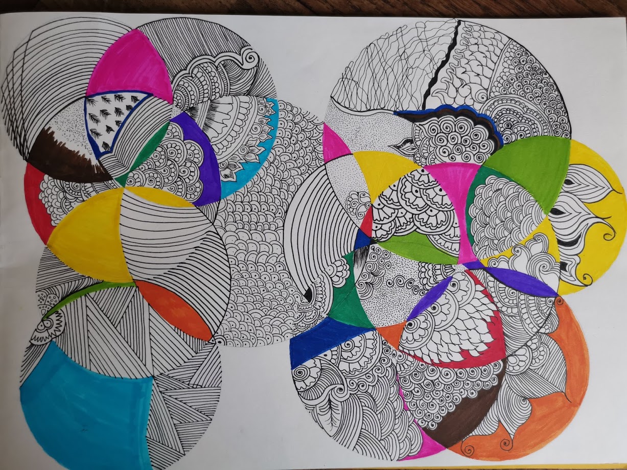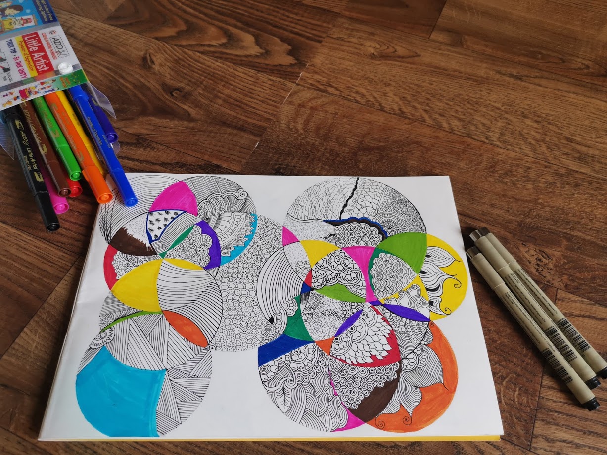 I was experimenting with doodling .What is actually doodling according to everyone? So i think doodling is an art which is creating using different shapes and forms on any surface. So this time i tried out doodling with circles with marker pens and doodling pens. Here are few images of my work .