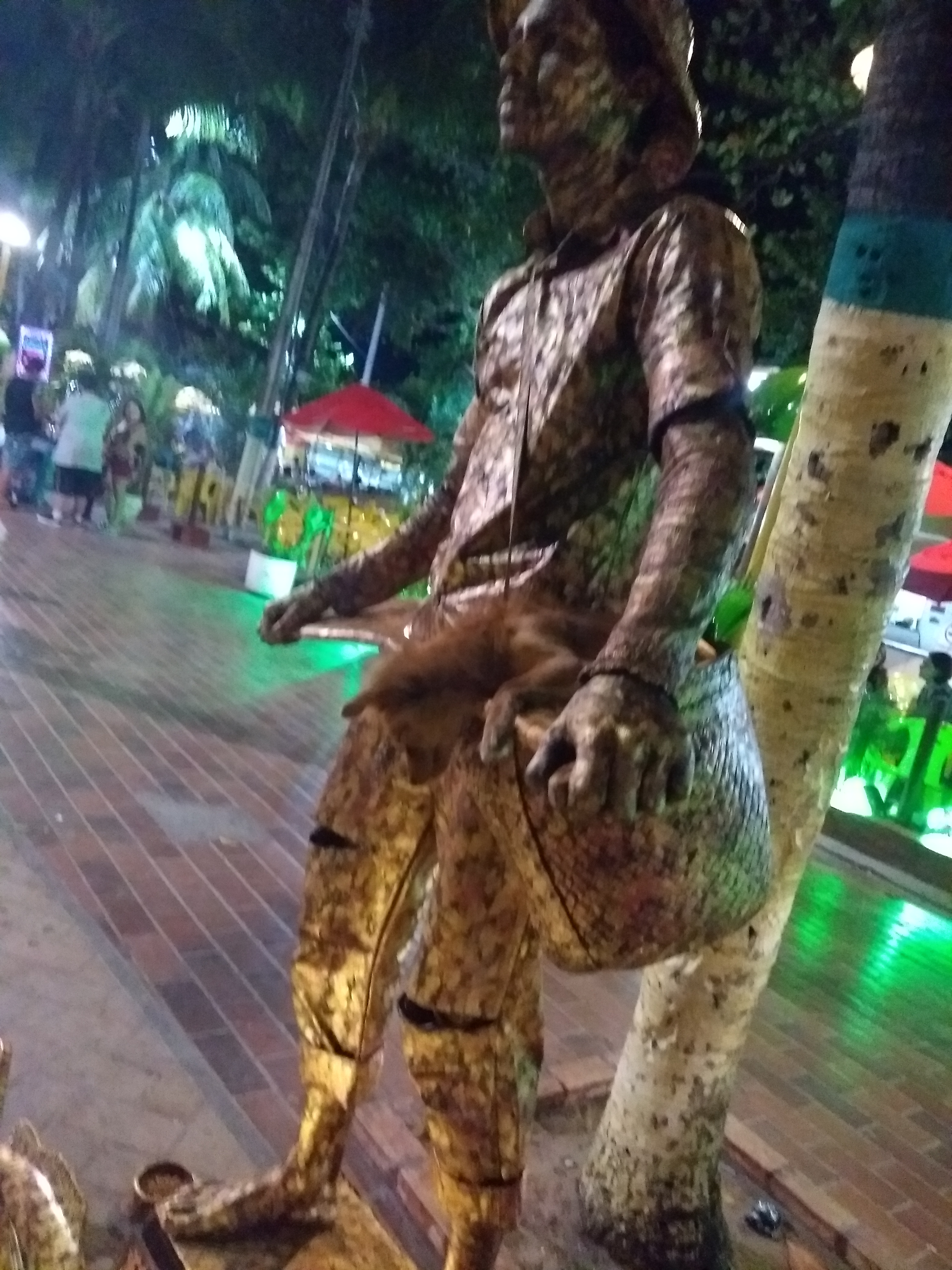 During my daily walk, I met two street performers. Look at the photo.