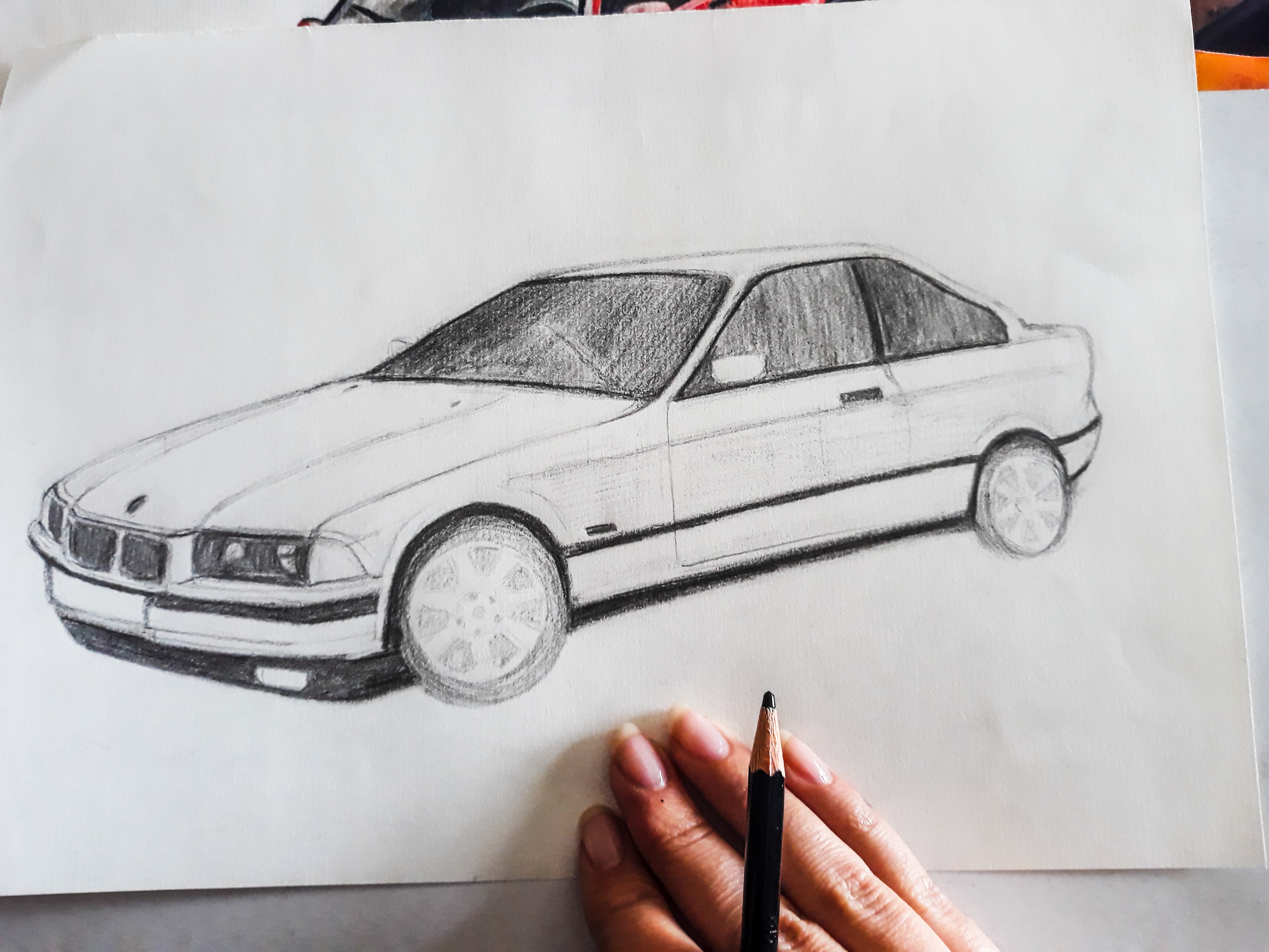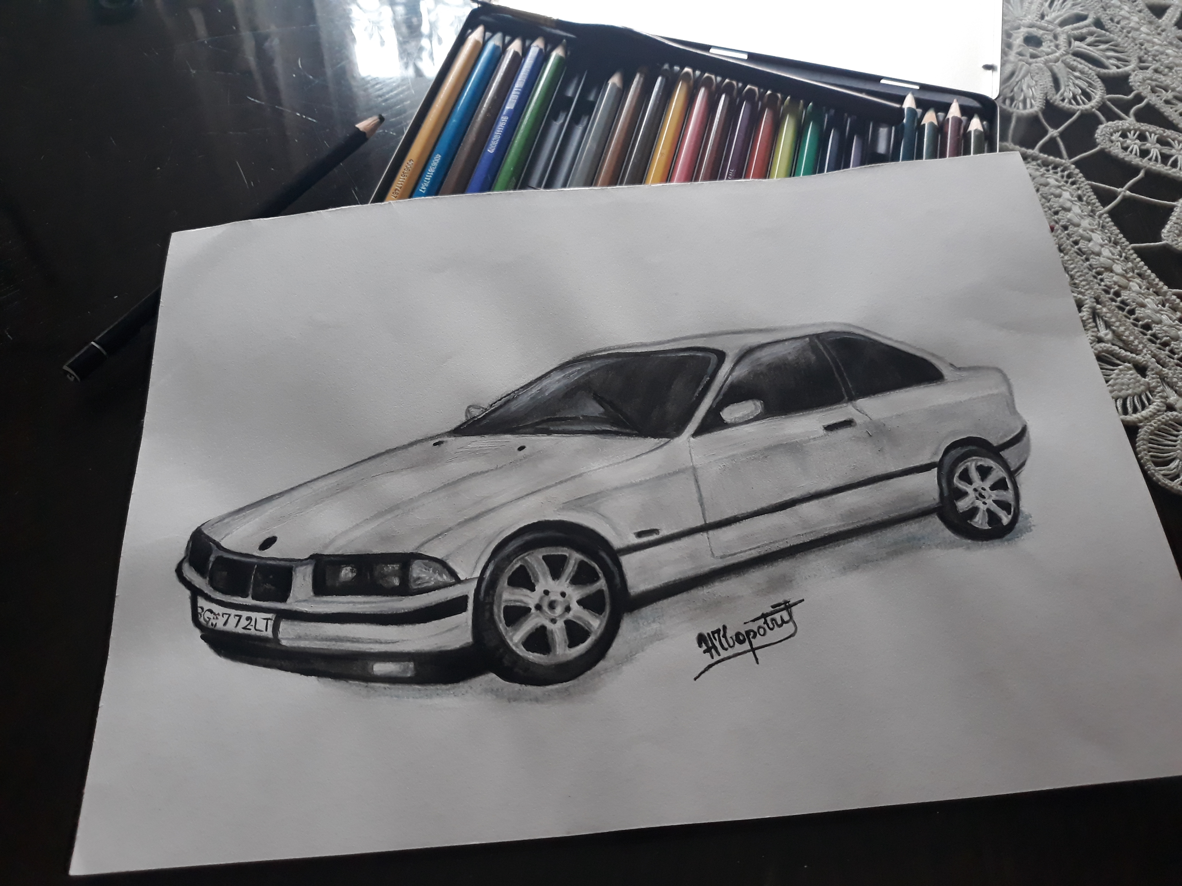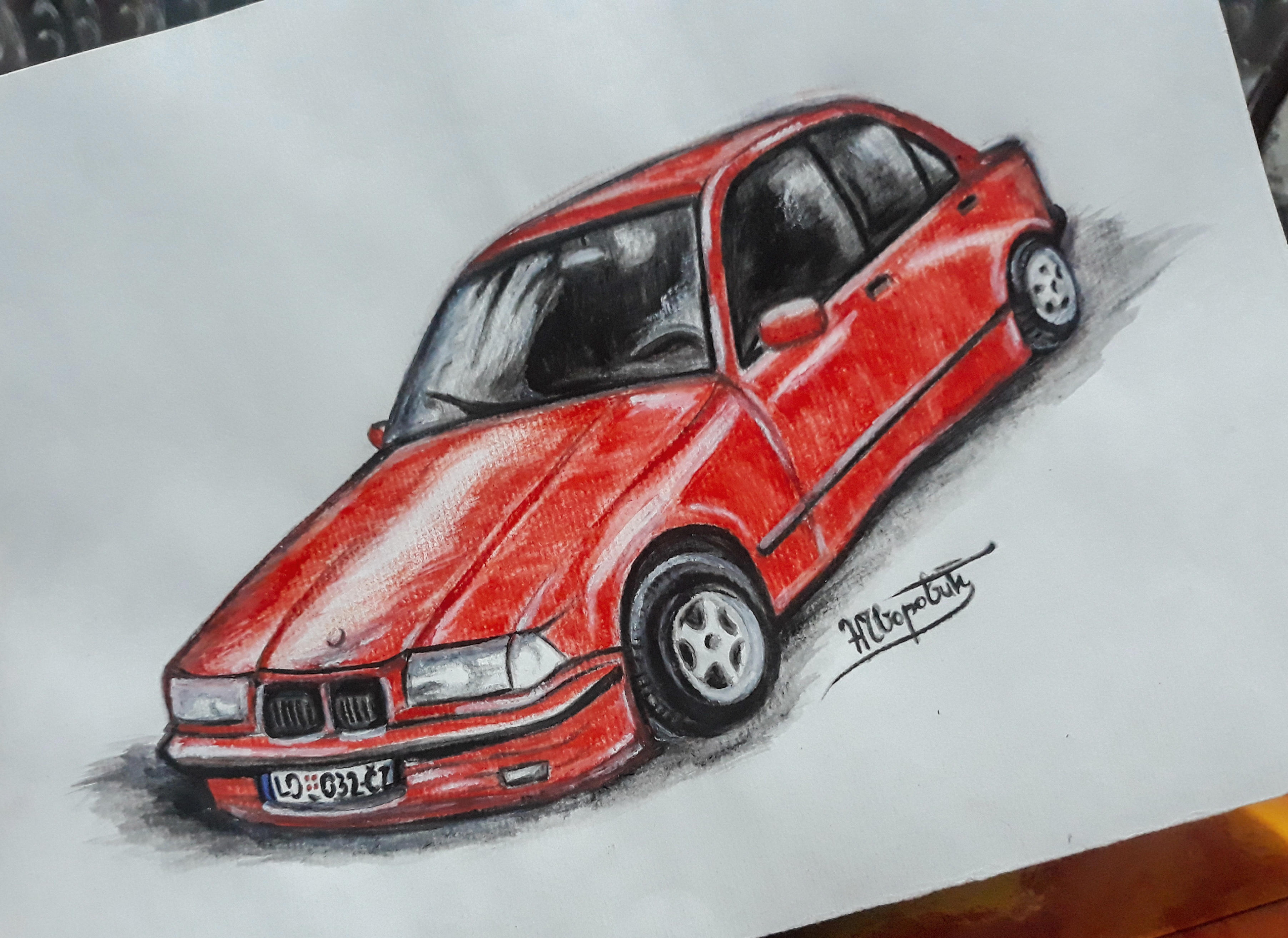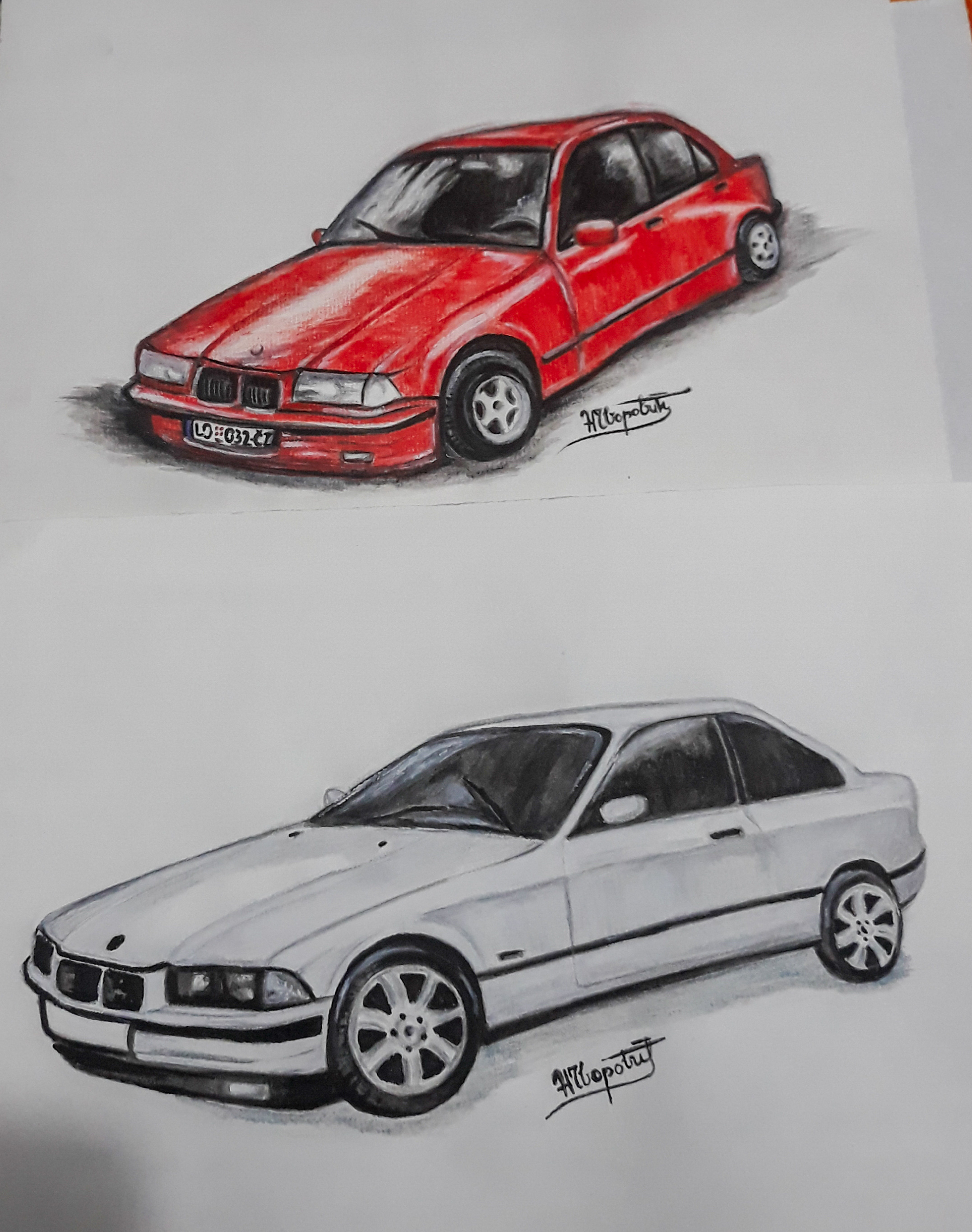 My new drawings .. this time it's about cars. My classmate wanted me to draw his old and his new car. I did it with water colors and he really liked it. Honestly, I don't understand car brands, so I can't talk about them too much, but I like them, especially the white car. I hope you like it too. :)