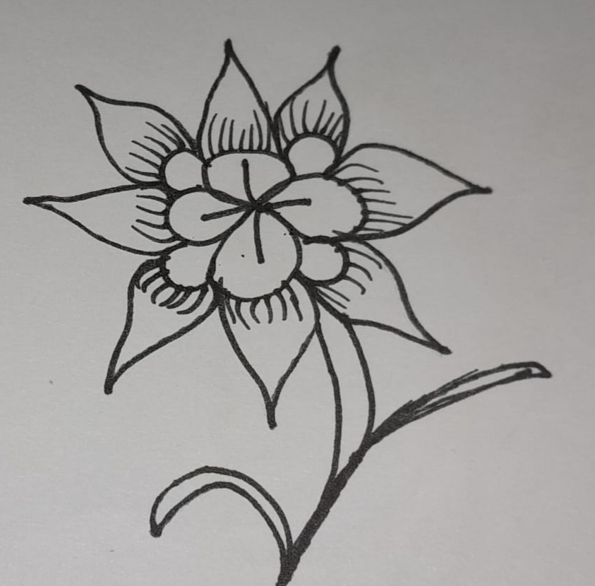তারপর ফুলের মধ্যে কিছু ডিজাইন এঁকে নিলাম । তারপর এই ফুলটি আপনাদের সামনে তুলে ধরলাম।