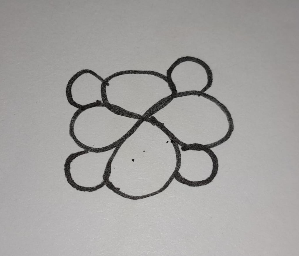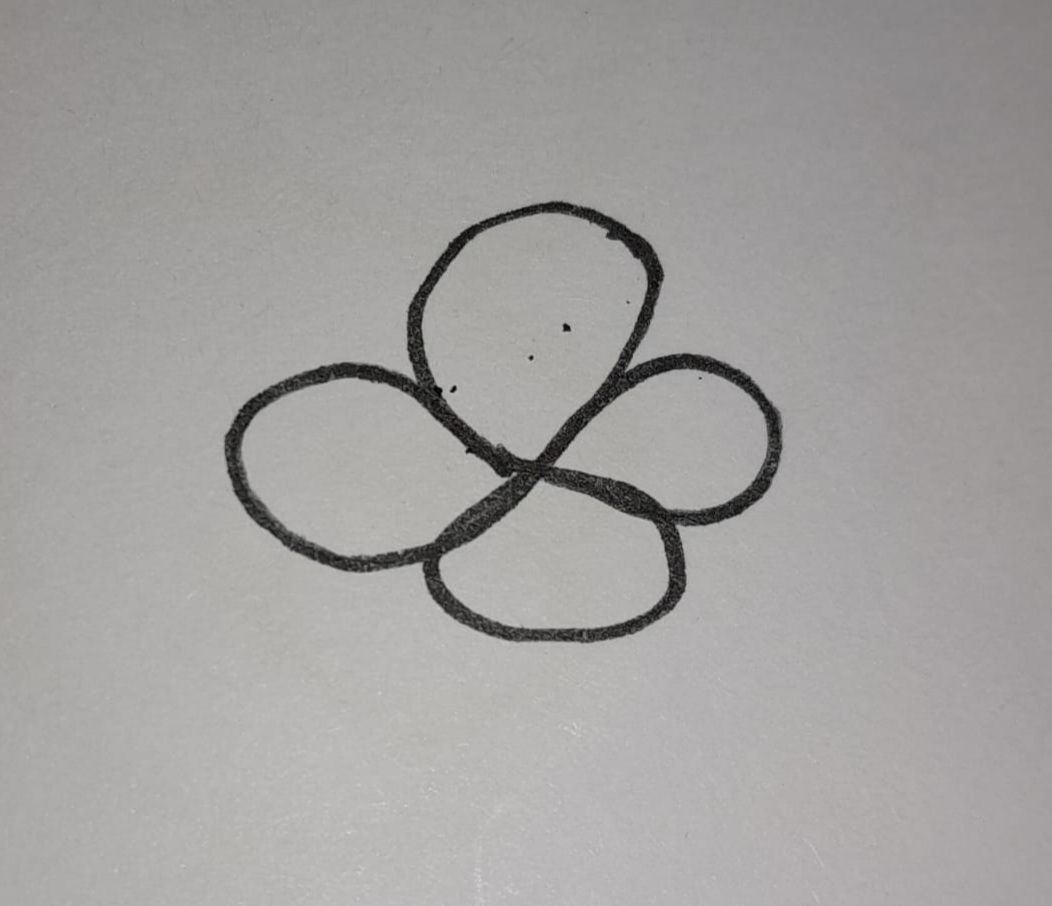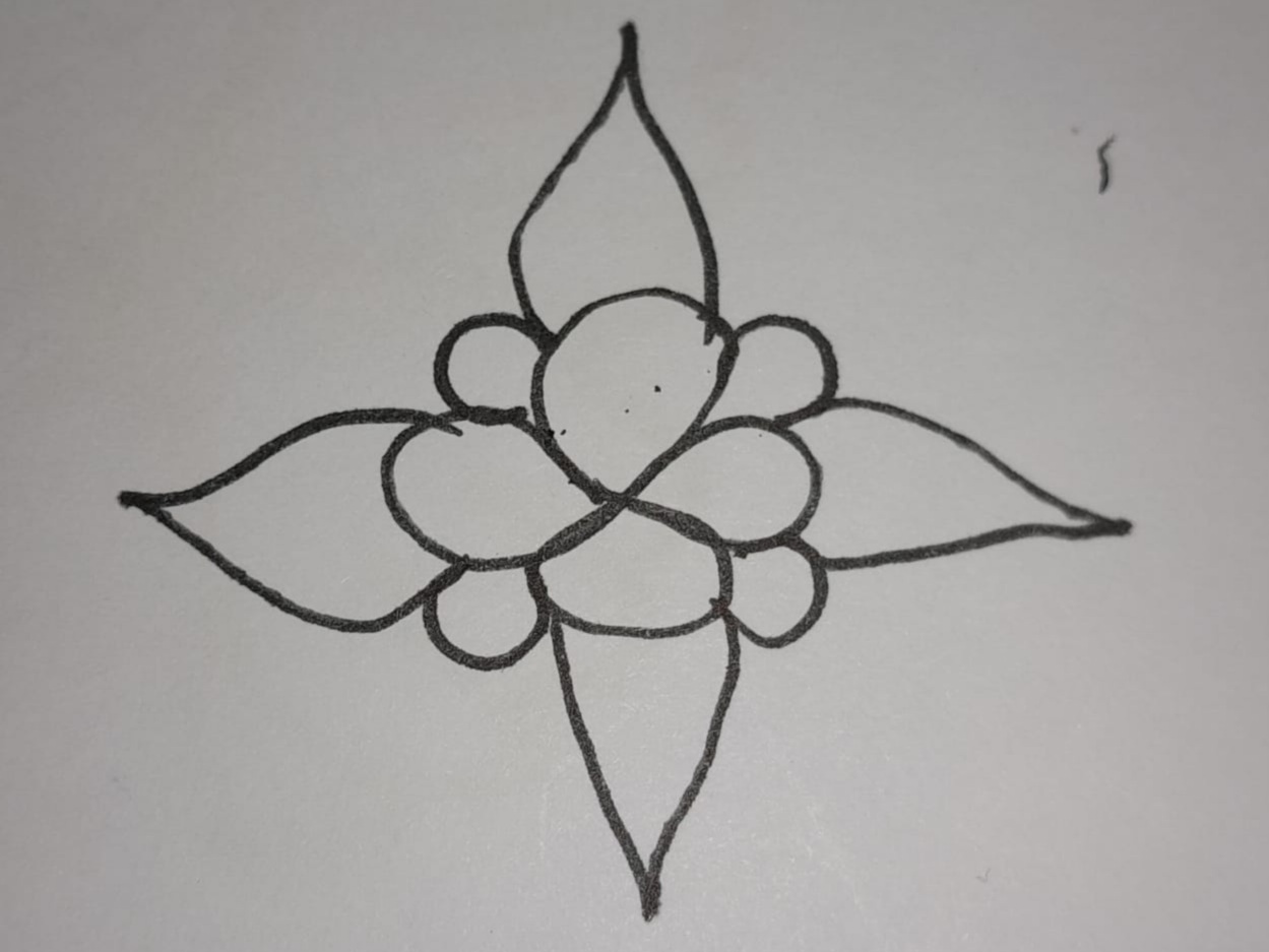 এরপর আরো চারটি বৃত্ত এঁকে নিলাম, তারপর চারটি ফুলের পাতা এঁকে নিলাম।