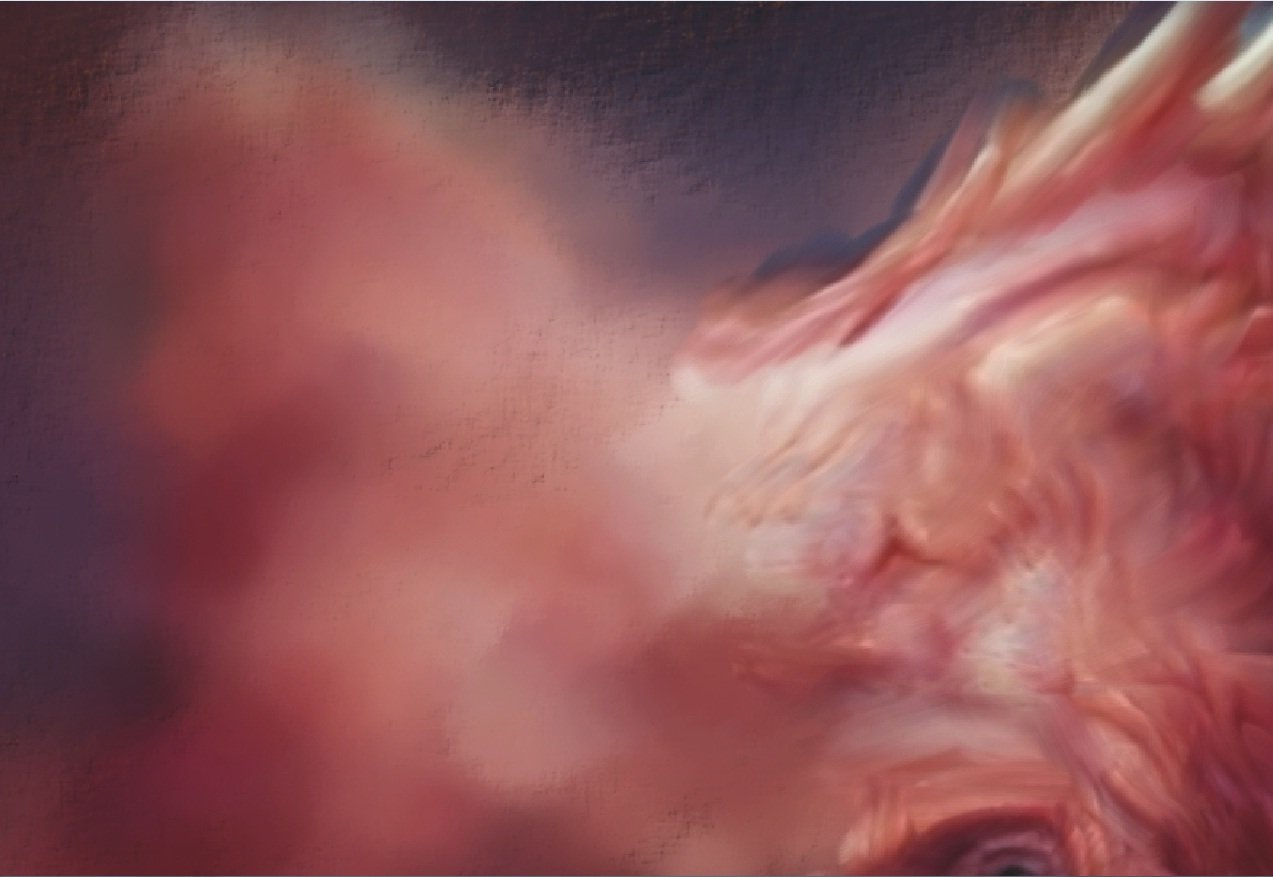 After using the chalk we will select the oils to give a touch of realism to our monster you can see up close the texture it has and this is thanks to using the add grain.