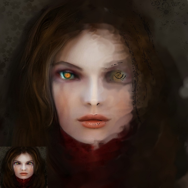 @oscurity and you will be able to see how is the configuration of the palettes that allow realizing the realistic strokes of the lips and the hair, continues entering into my world and thus develop even more in the techniques of the digital painting, with my favorite program Corel Painter 12.