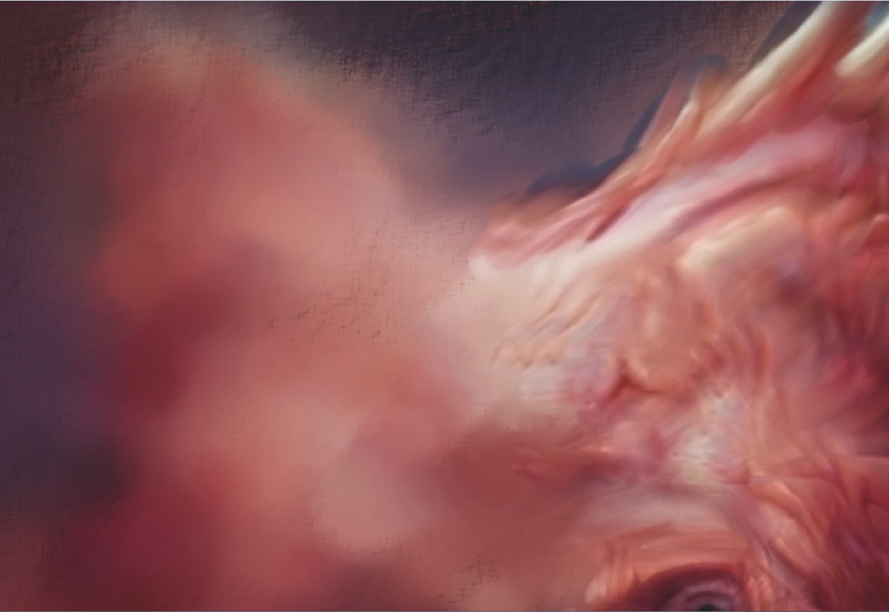 Luego de utilizar la tiza vamos a seleccionar el oils para darle un toque de realismo a nuestro monstruo puedes ver de cerca la textura que tiene y esto es gracias al utilizar el add grain.