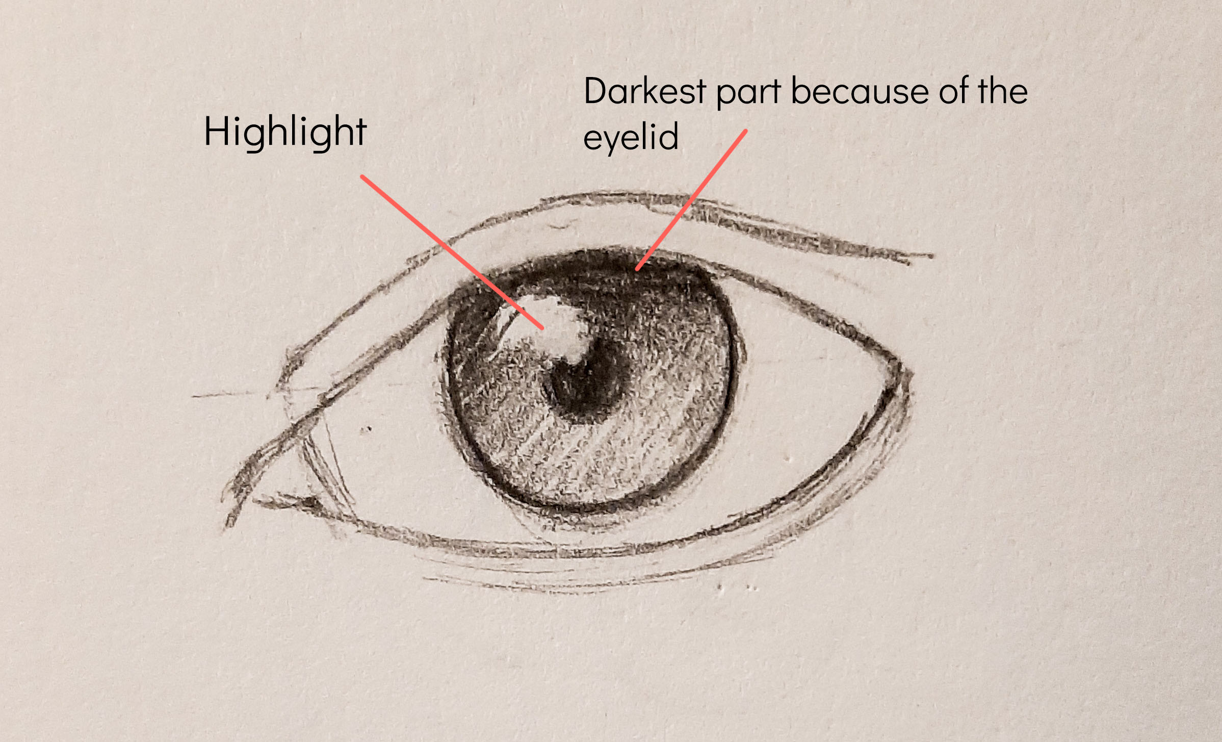 - The highlight on the iris. It really makes a big difference. It is THE element which gives life to an eye drawing.