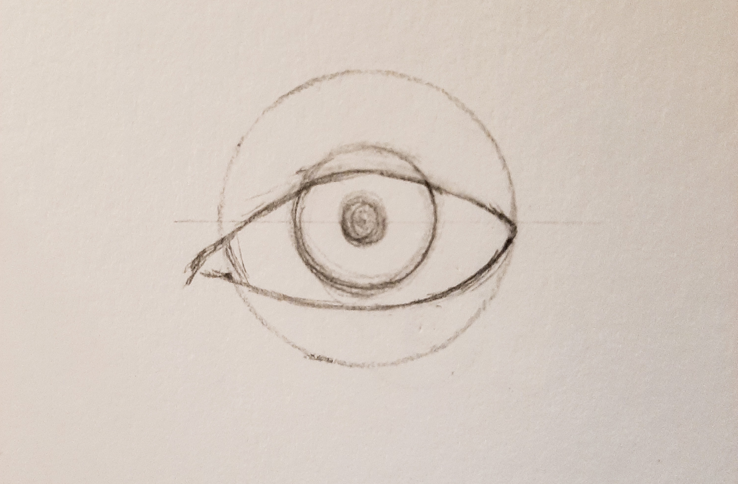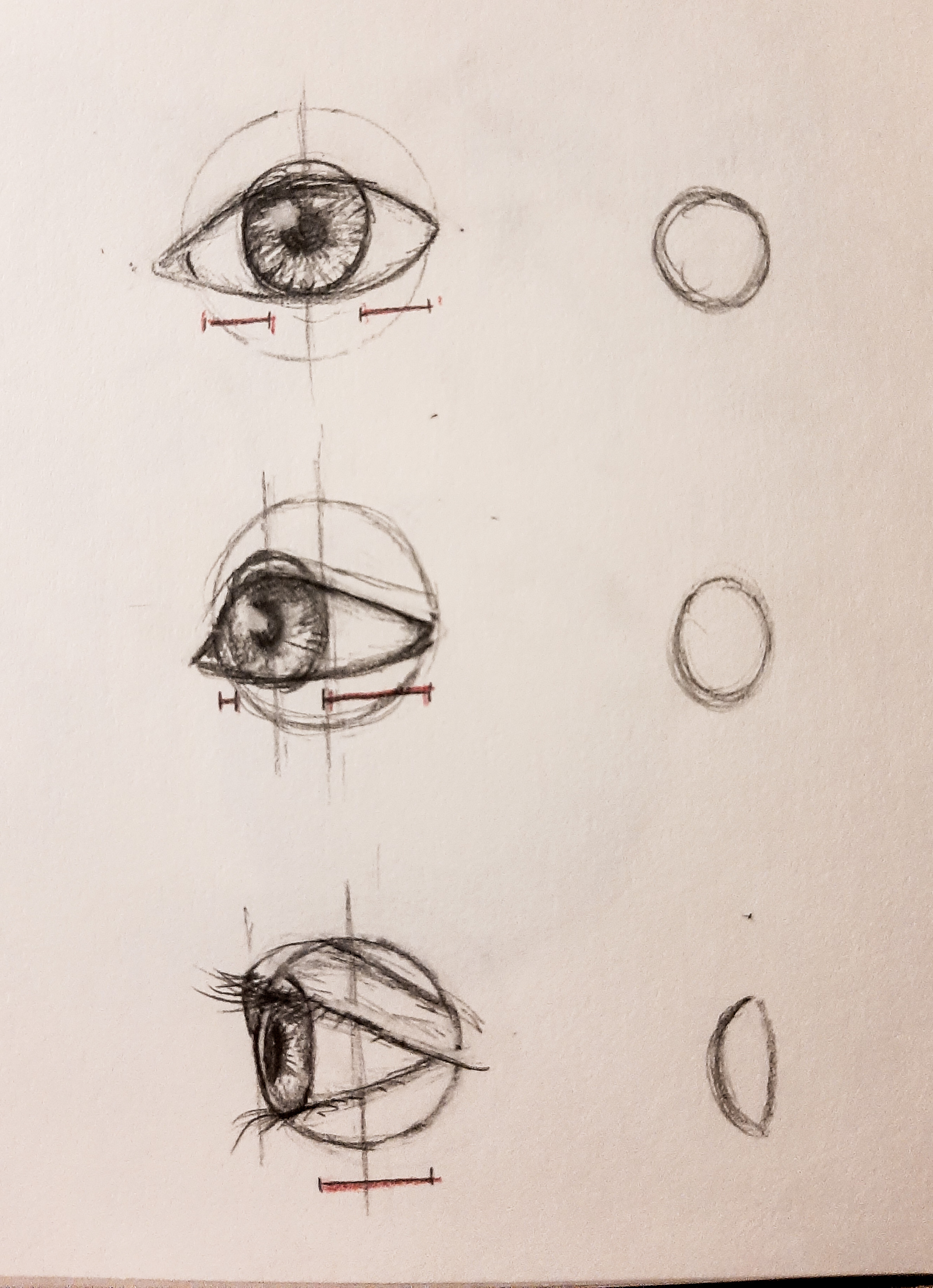 If you want to be sure of having the good proportions, you can use a compat to trace it before of drawing the eyelid and other.