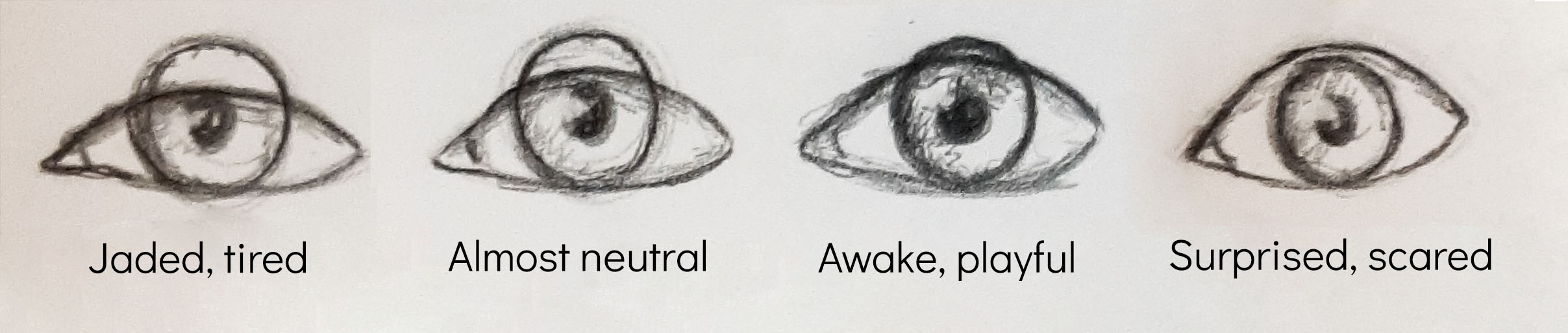 Pay attention when drawing and eye of not to give your character an unwanted expression, due to a bad eyelid position.
