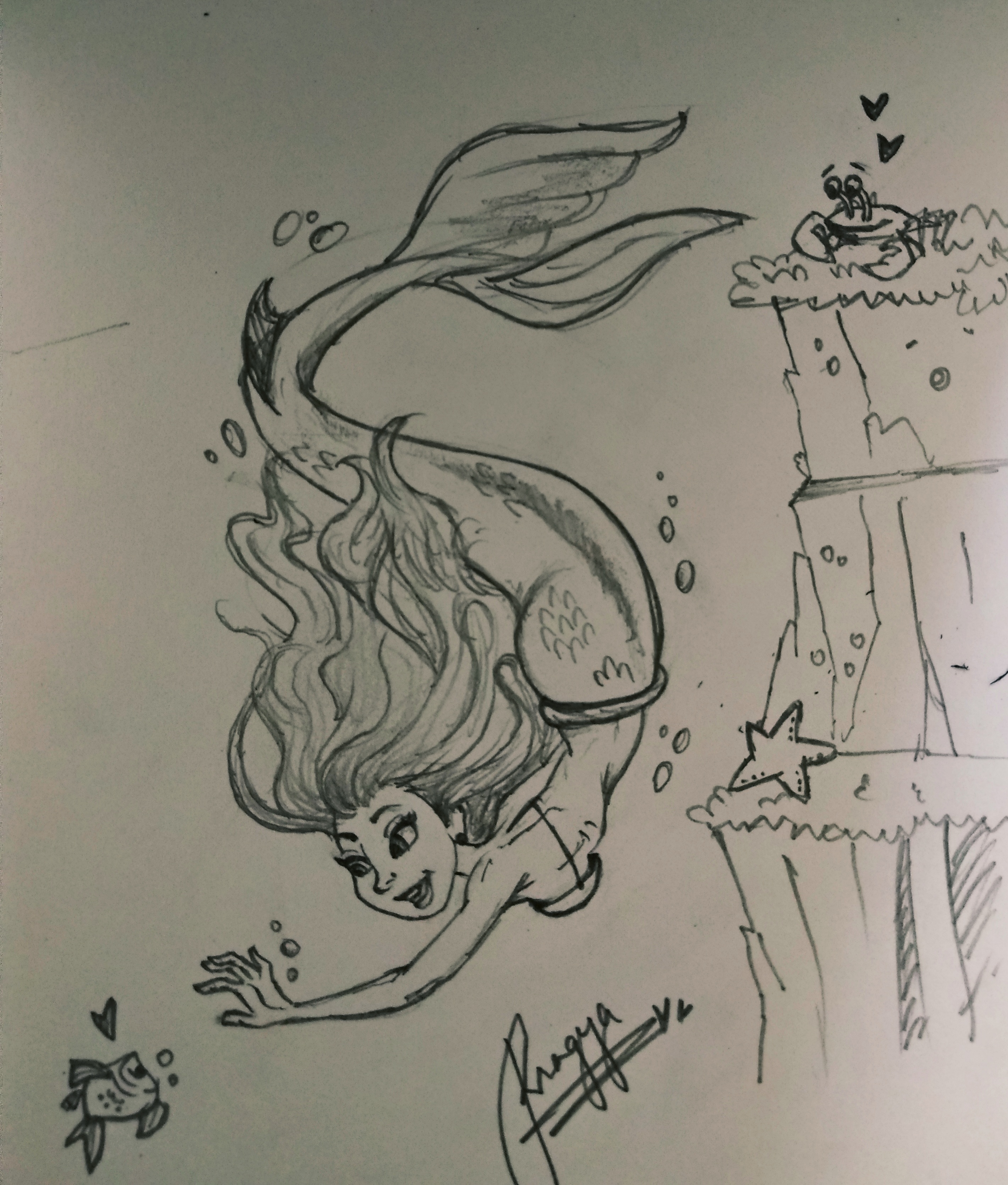 Little mermaid.pragyagupta (46)in #art • 8 years ago Deep down in the ocean, chasing the dreams. Making friends, and exploring beauties. There was a little mermaid who comes to me. #sketch #painting #drswing #mermaid