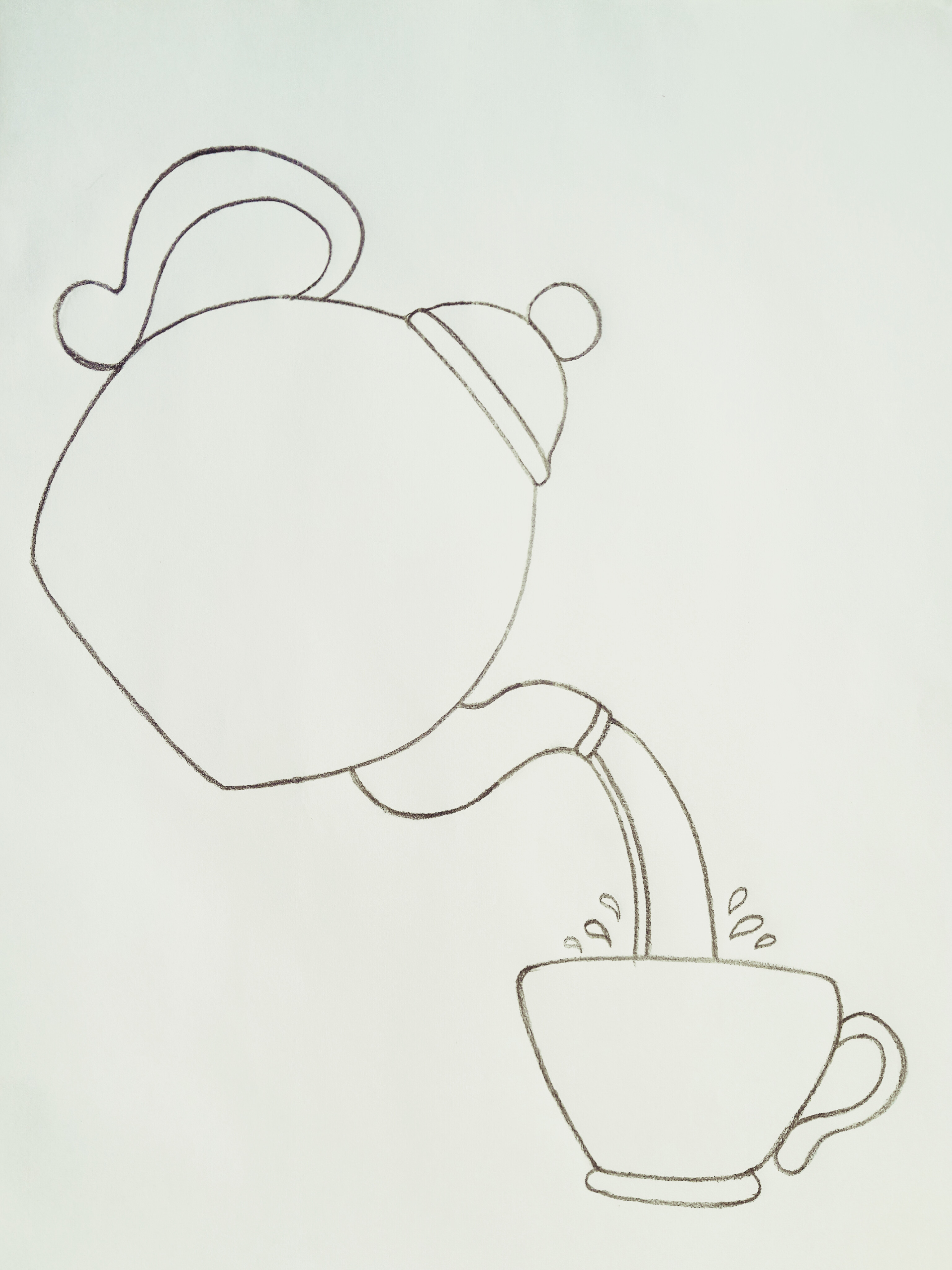 প্রথমে পেন্সিলের সাহায্যে একটি চায়ের কাপ অঙ্কন করে নিলাম। এরপর চায়ের কাপের উপরে একটি কেটলি অঙ্কন করে নিলাম। কেটলি থেকে চায়ের কাপের মধ্যে চা ঢালা হচ্ছে এমন দৃশ্যও অঙ্কন করে নিলাম।