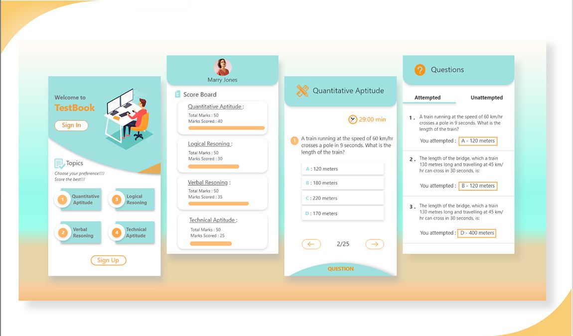 App concept for Multiple choice question test (Aptitude)