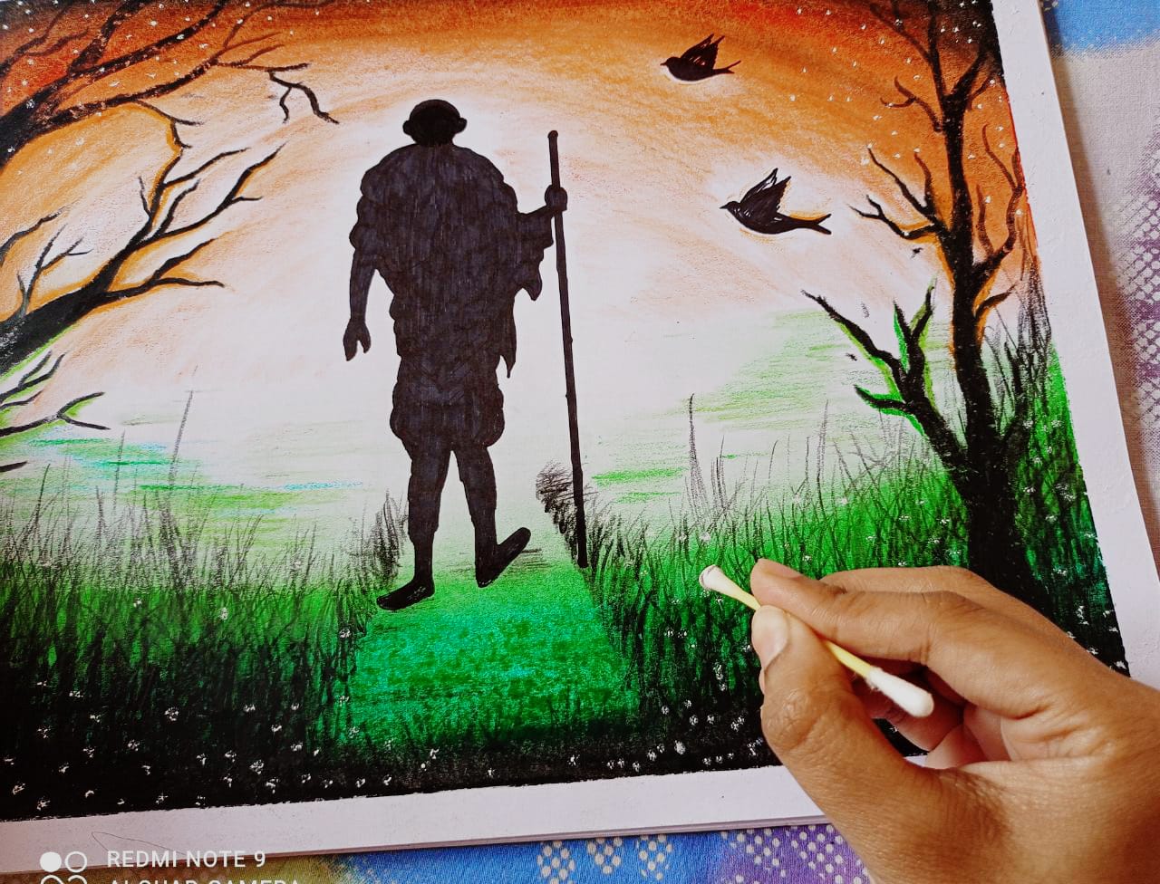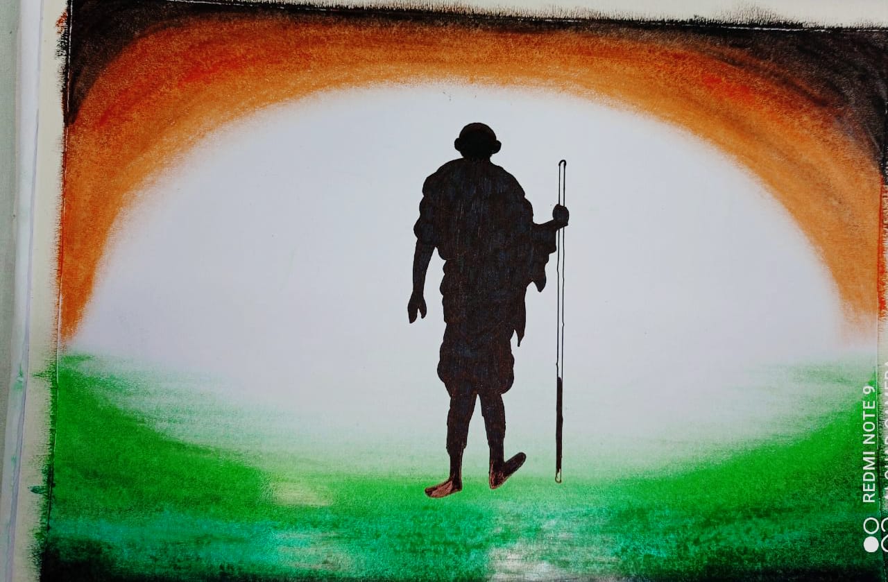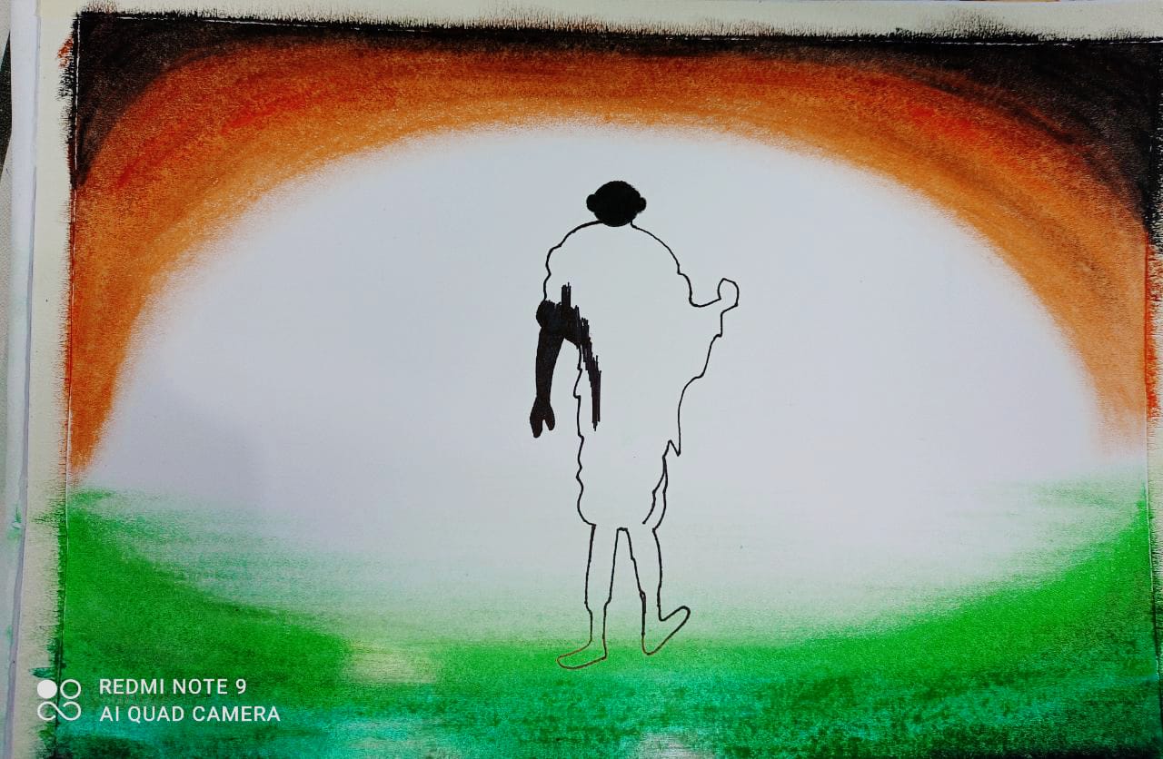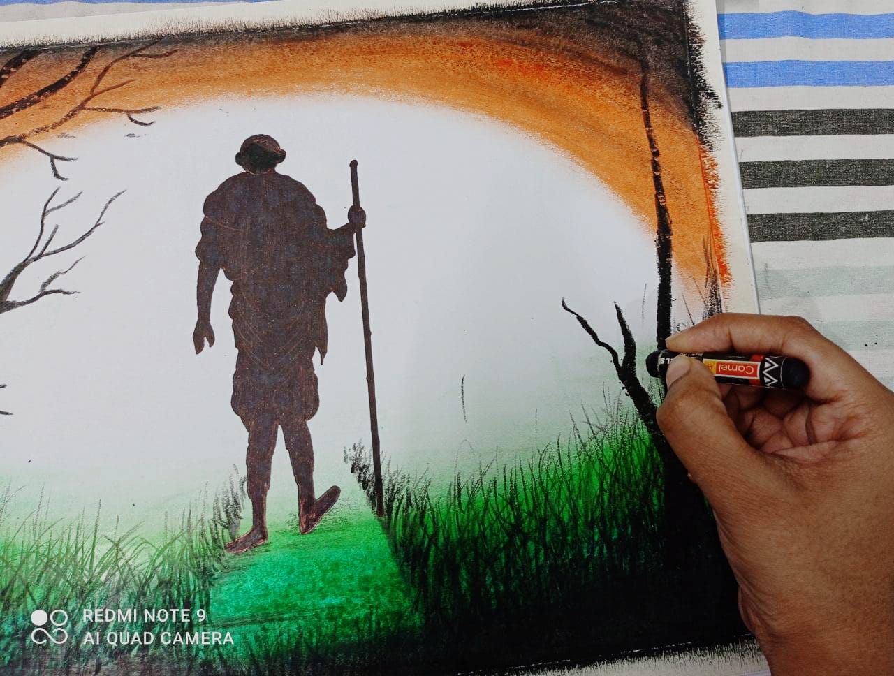 • এরপর মার্কার পেন দিয়ে গান্ধীজীর অবয়বটা একে নিলাম।