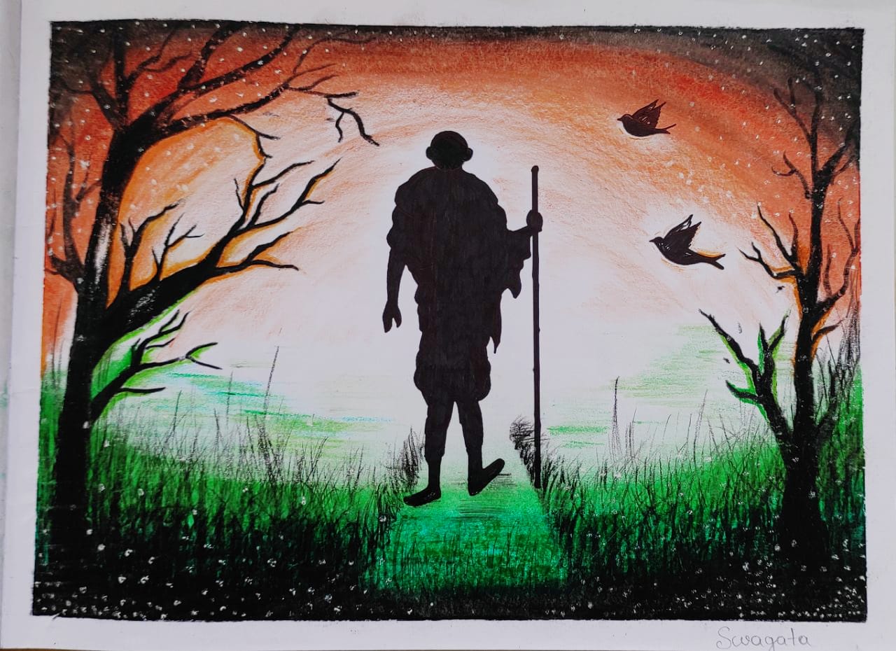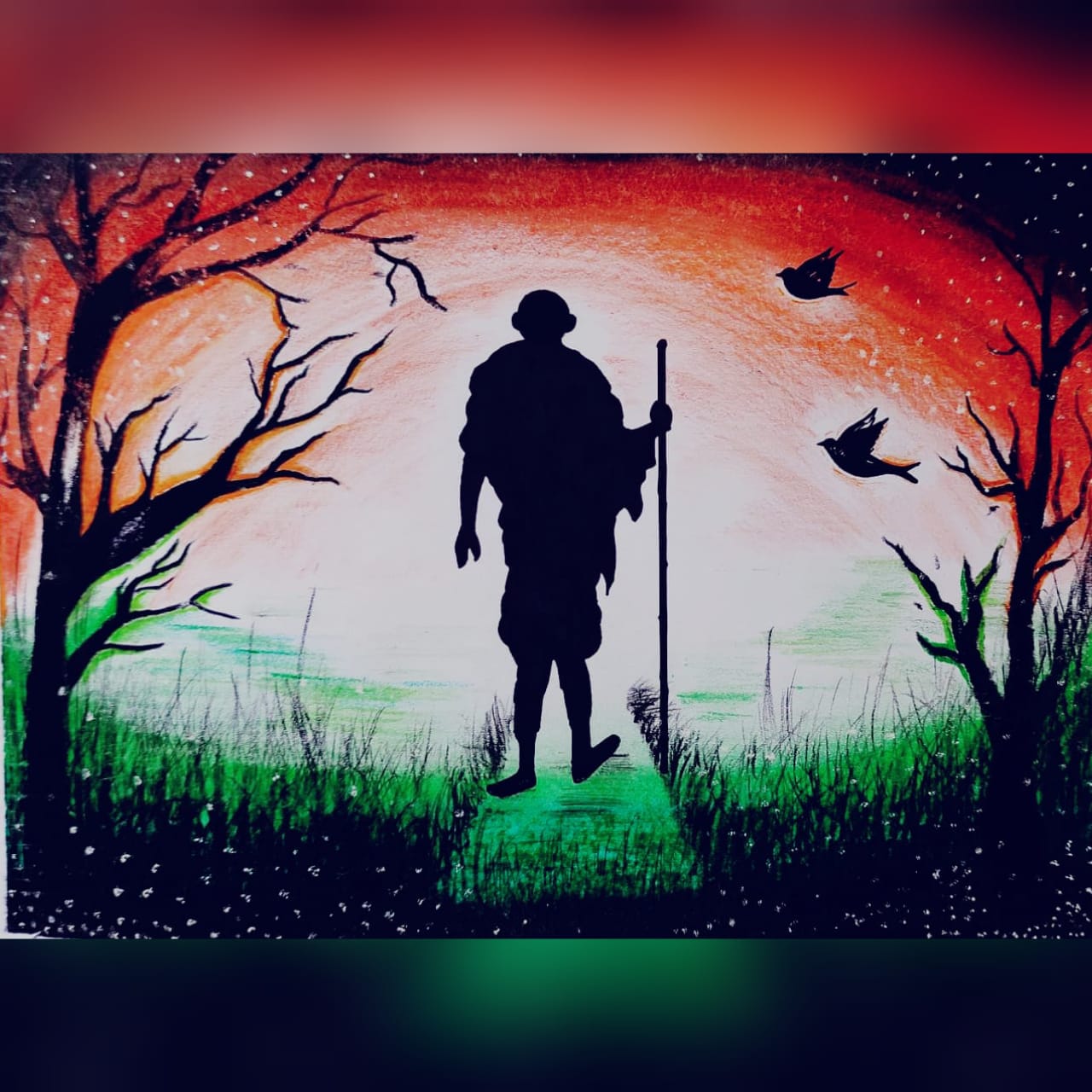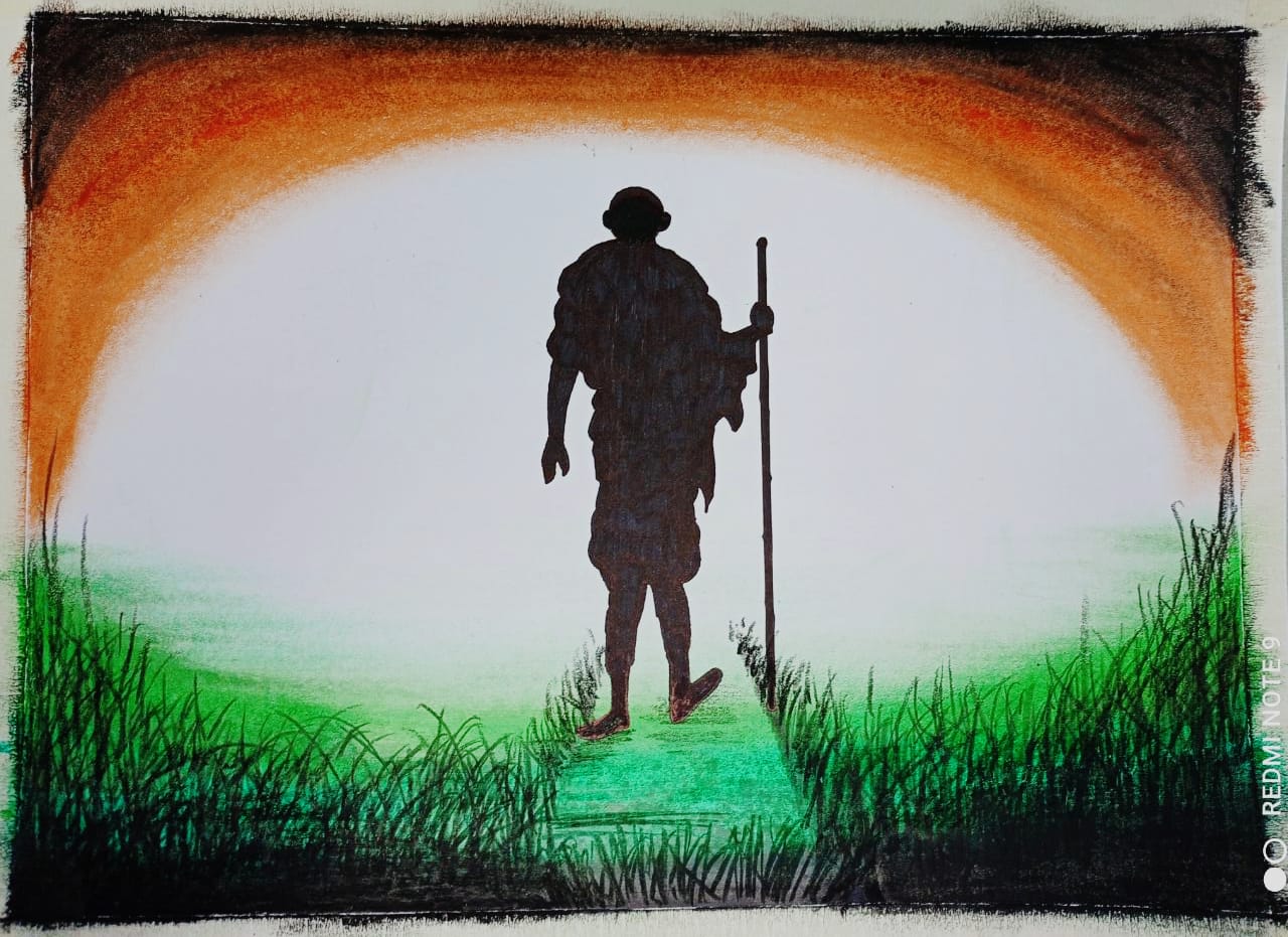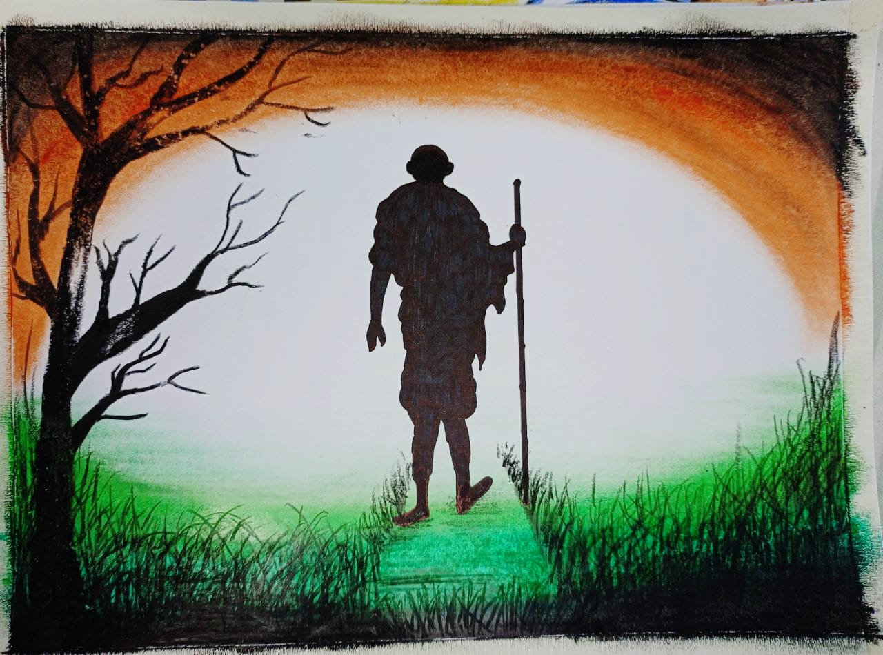 • এরপর মার্কার পেন দিয়ে গান্ধীজীর অবয়বটা একে নিলাম।