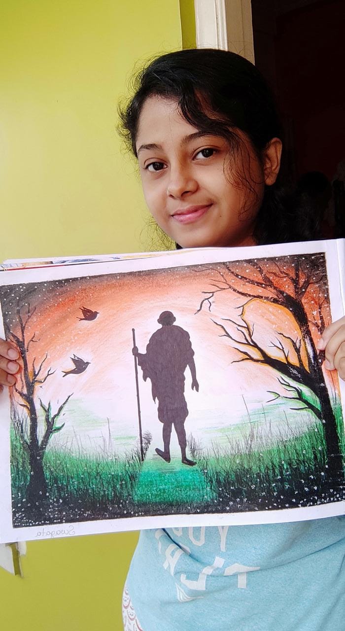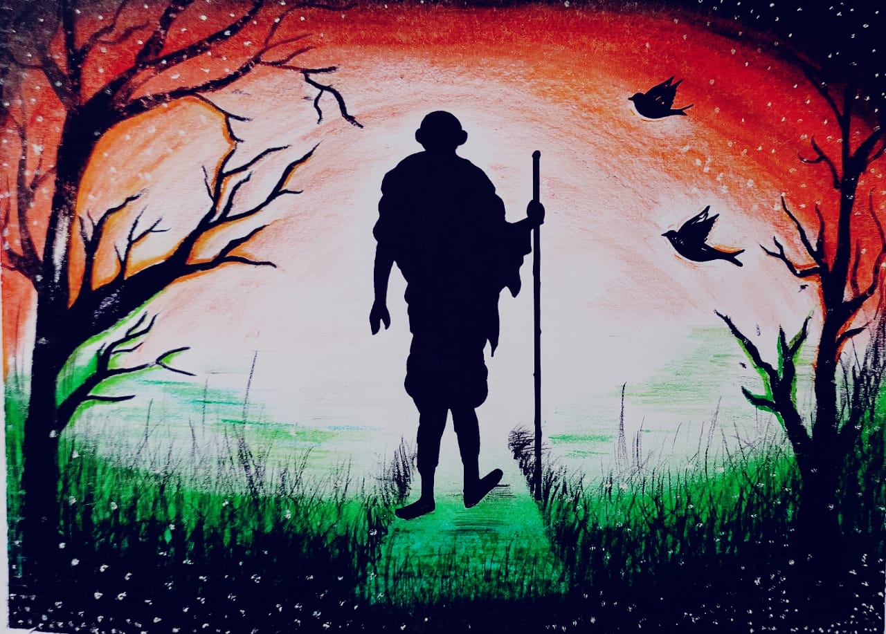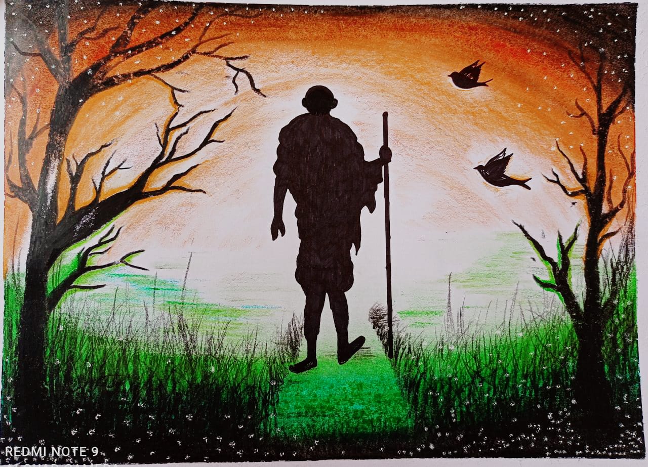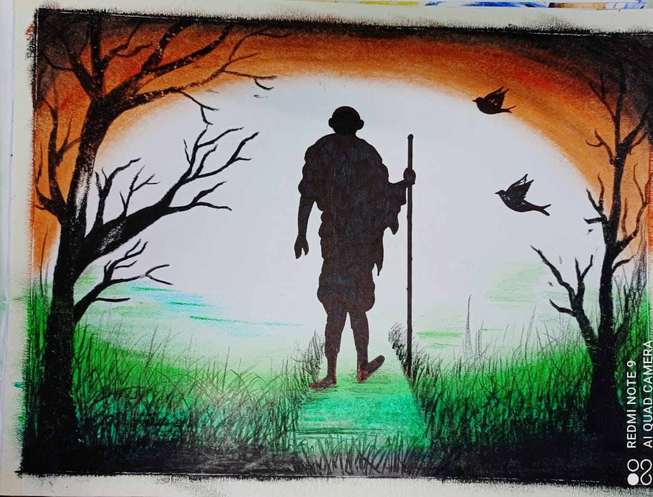 • এরপর মার্কার পেন দিয়ে গান্ধীজীর অবয়বটা একে নিলাম।