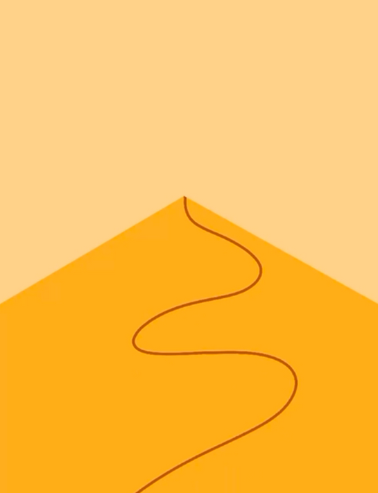 So for the first sand dune, we change the background to a light yellow and start with a simple triangle and a curly line from the tip going down.