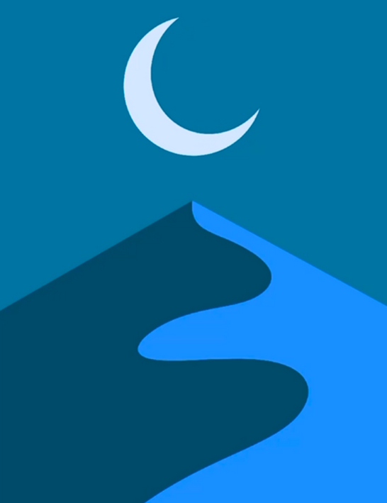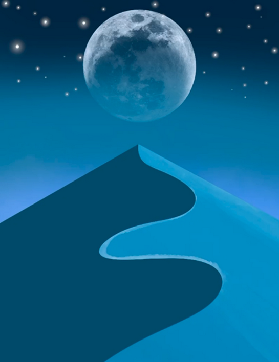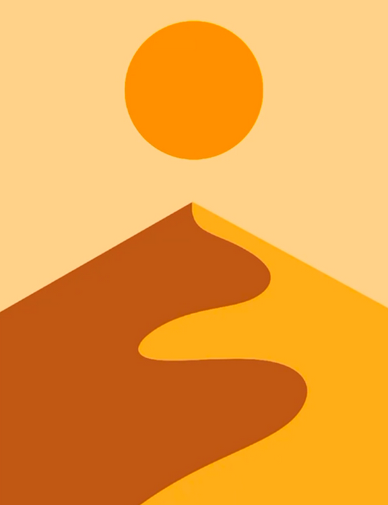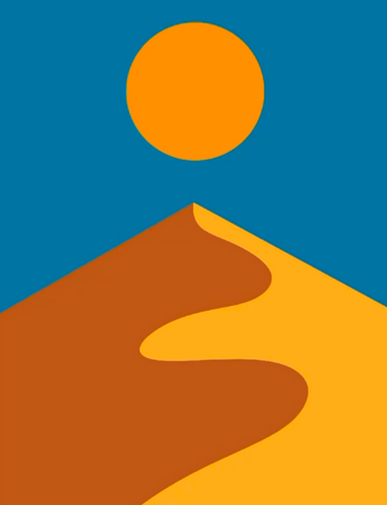 Then we fill in the colour of the dune on the left side a darker shade and fill in an orange sun.