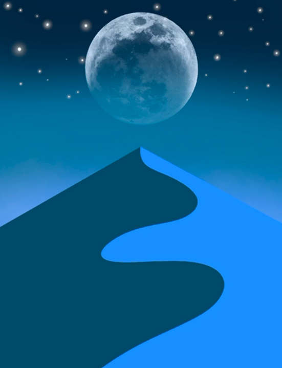 But this time since it's a night scene, we can change the sun to a moon and while a full moon looks nice, a crescent one would be more stylised.