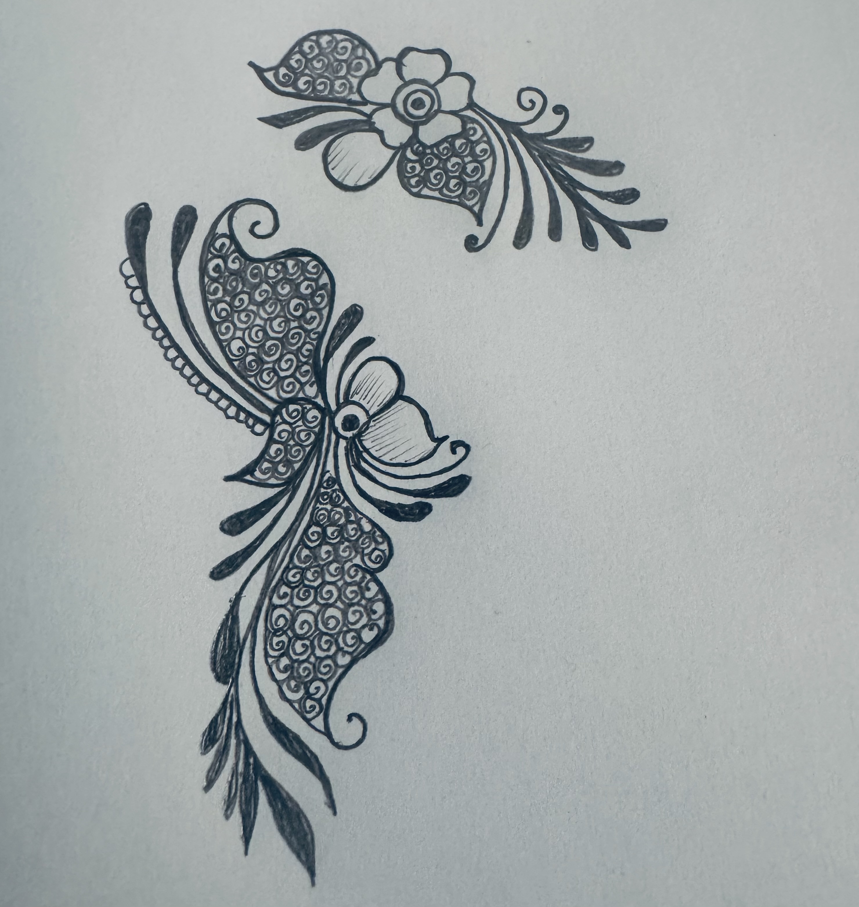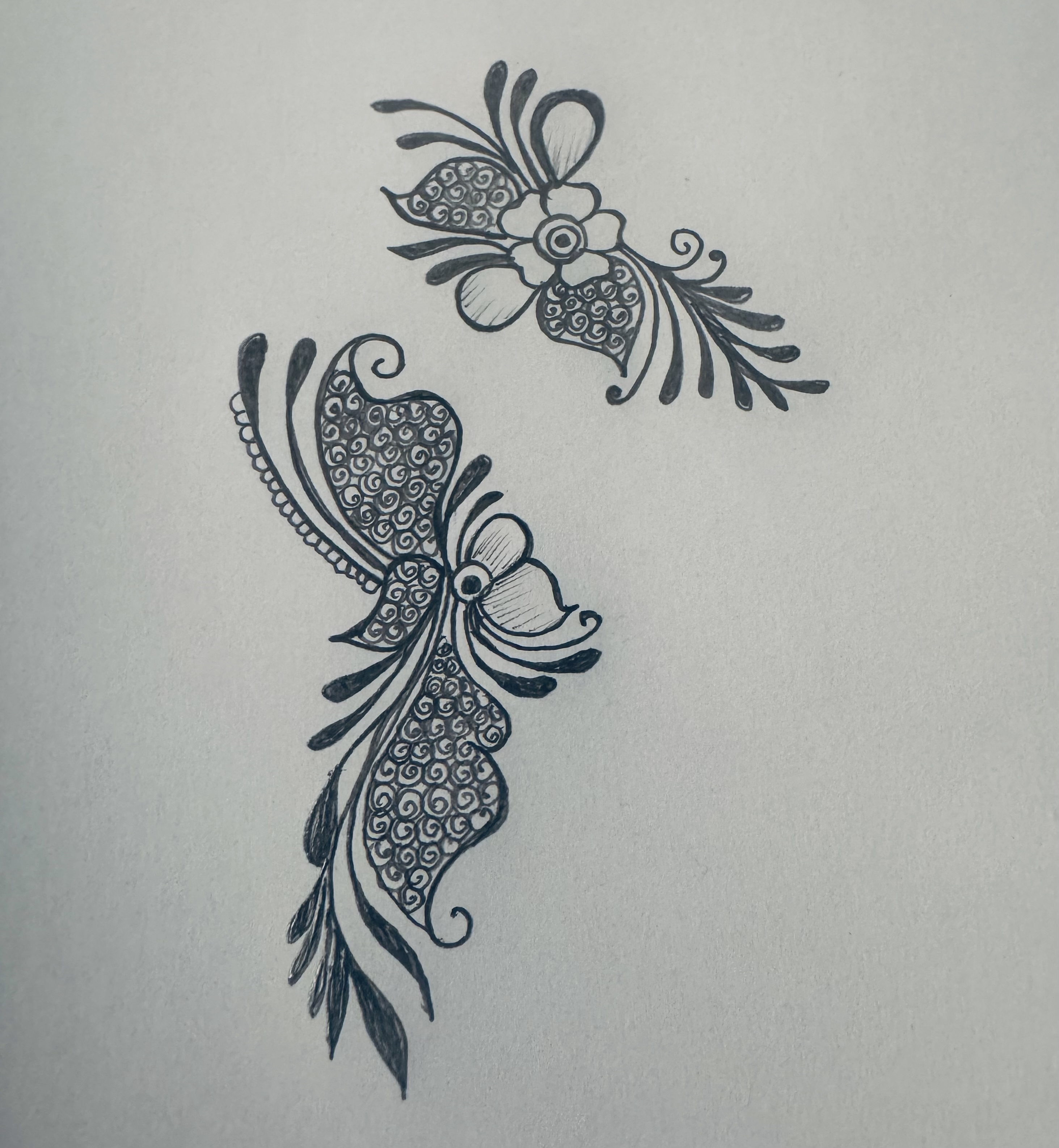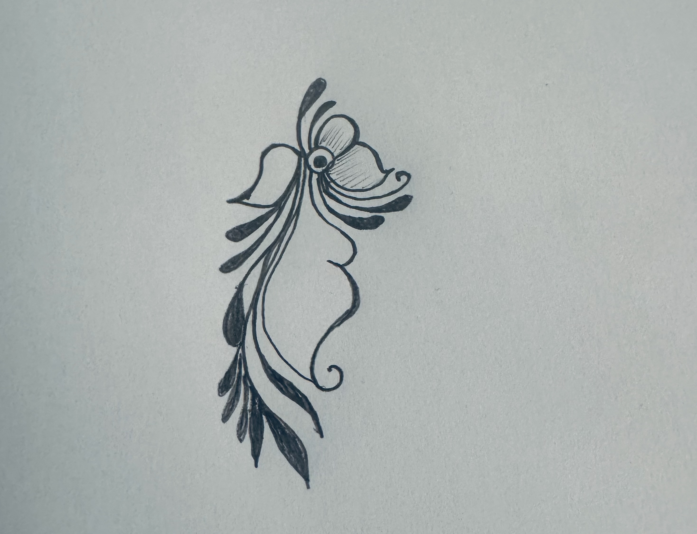 এরপর উপরের দিকে এভাবে ছোট্ট করে একটি ফুল এঁকে তার নিচের দিকে এভাবে ডিজাইন করে নিয়েছি।