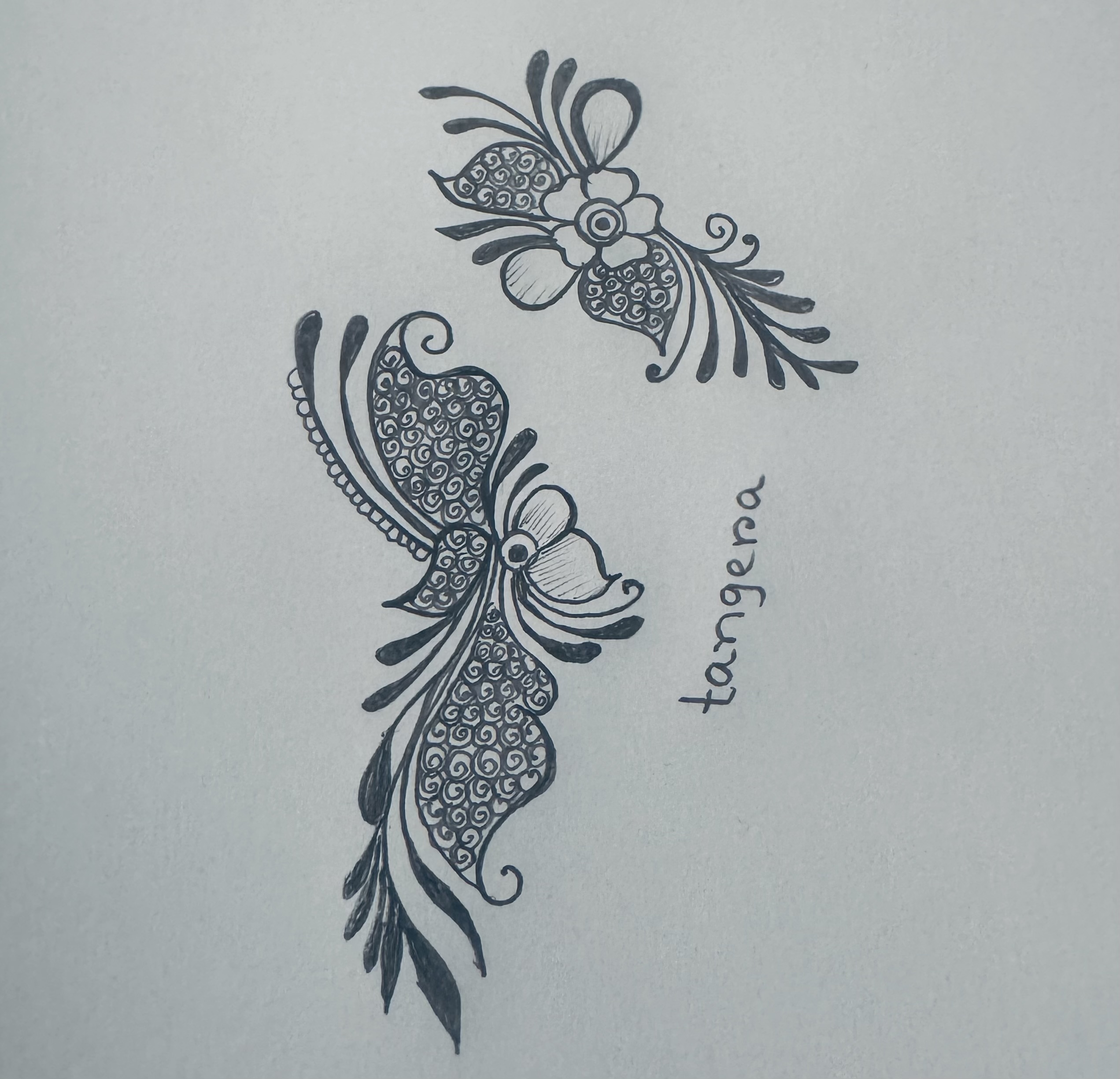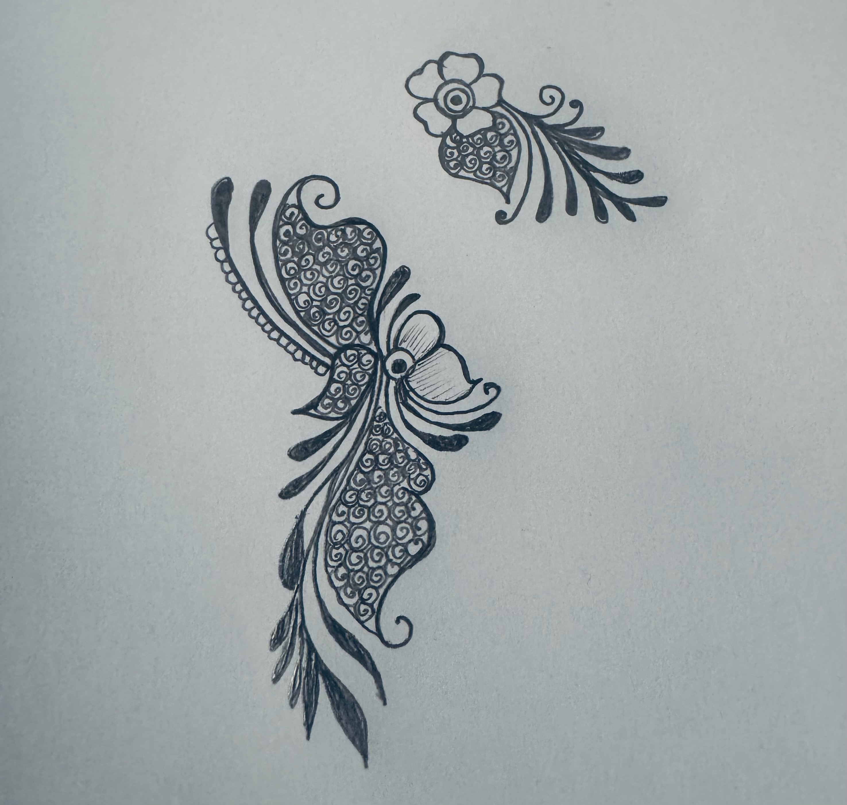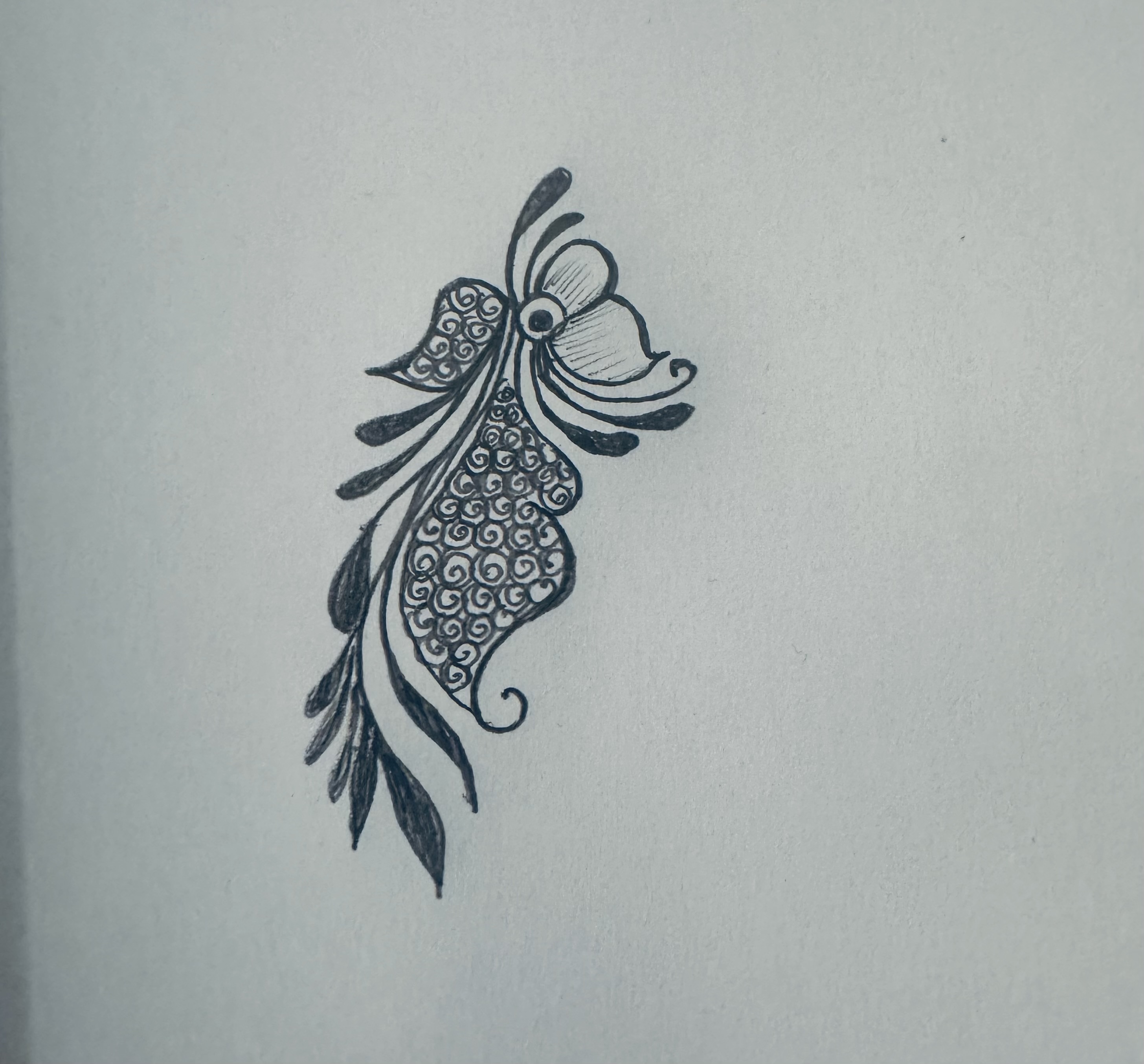 এরপর উপরের দিকে এভাবে ছোট্ট করে একটি ফুল এঁকে তার নিচের দিকে এভাবে ডিজাইন করে নিয়েছি।