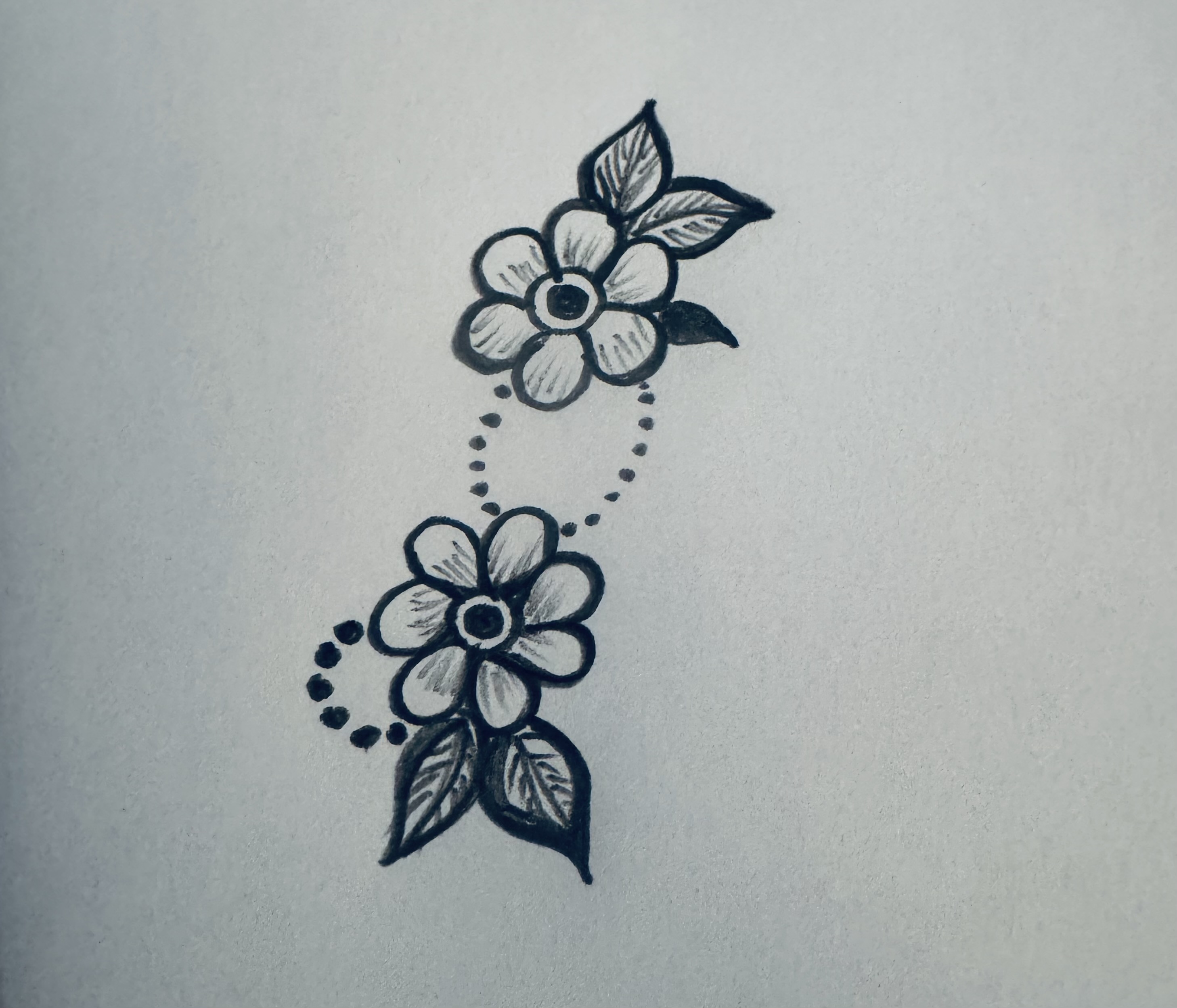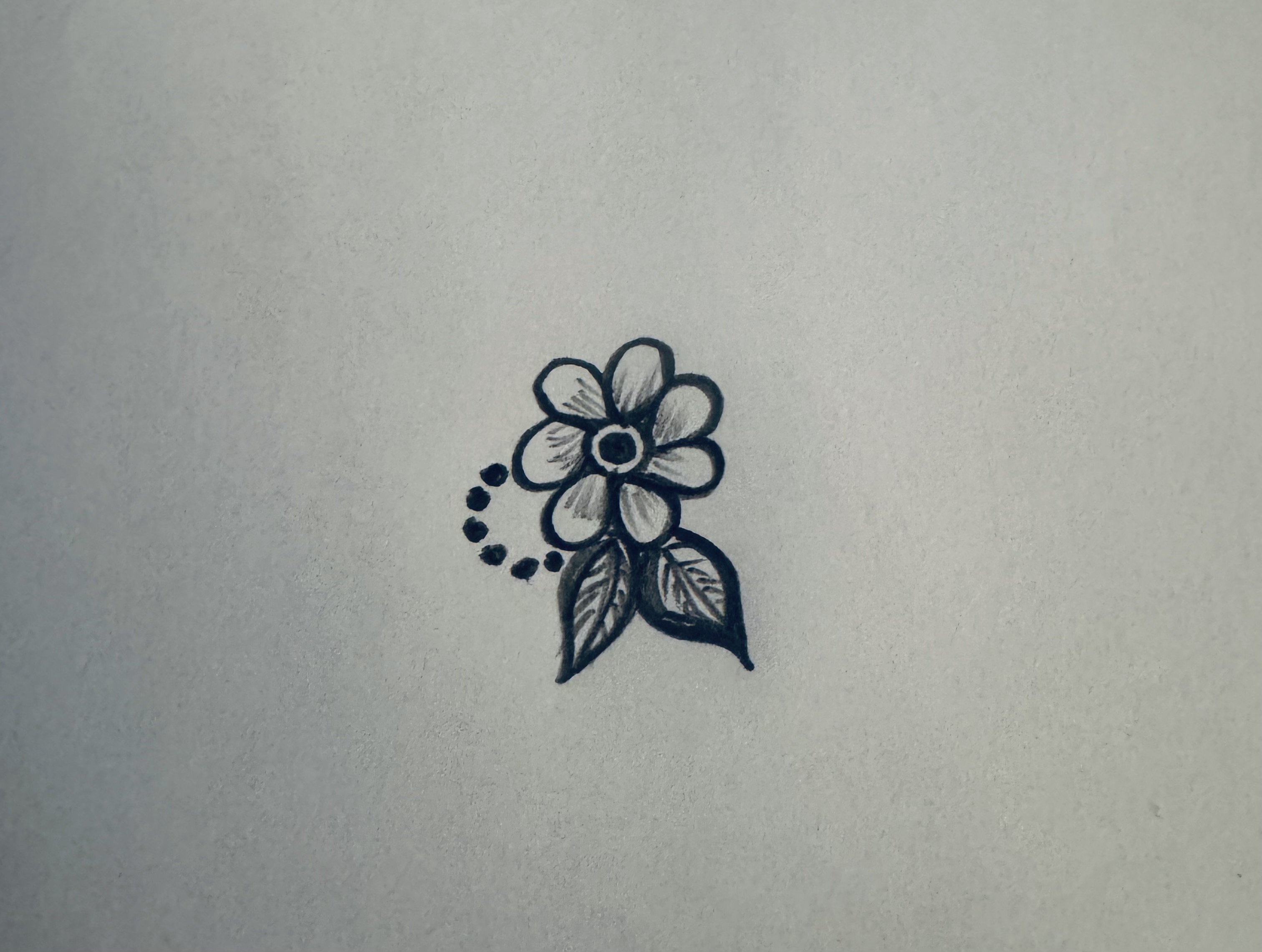 এরপর ফুলটির নিচের দিকে দুটি পাতা ও পাশে এভাবে ডট ডট করে একটু ডিজাইন করে নিয়েছি।