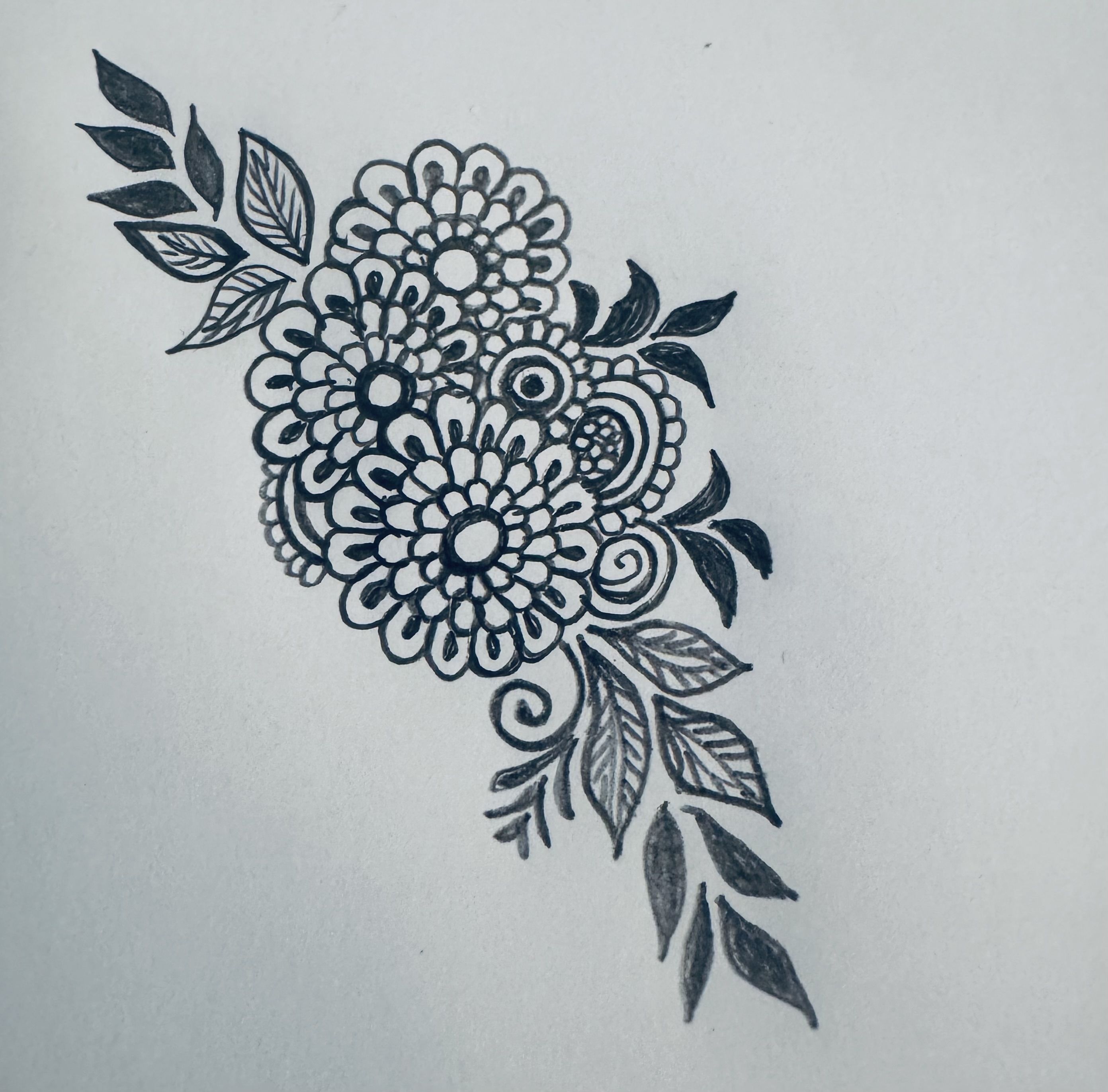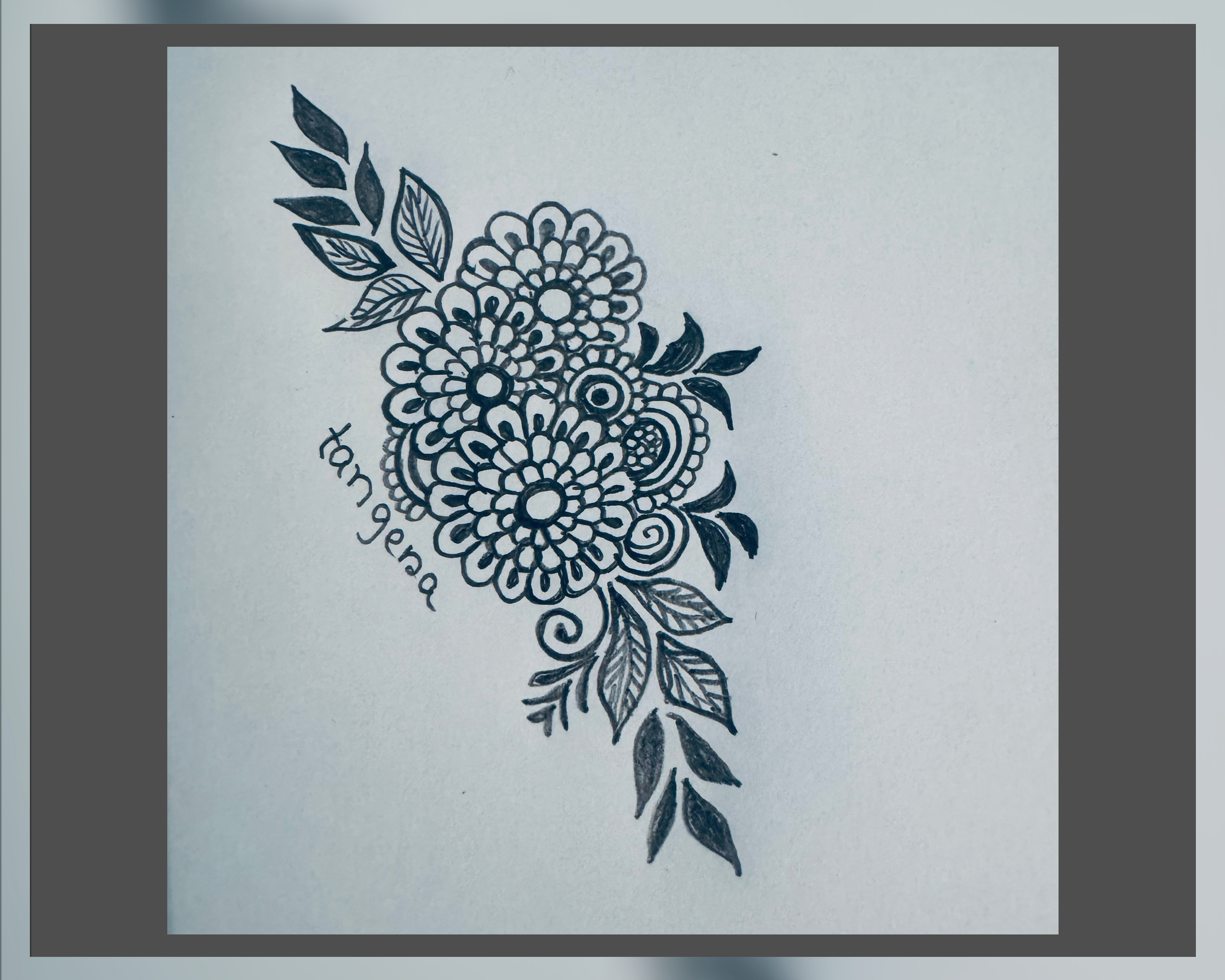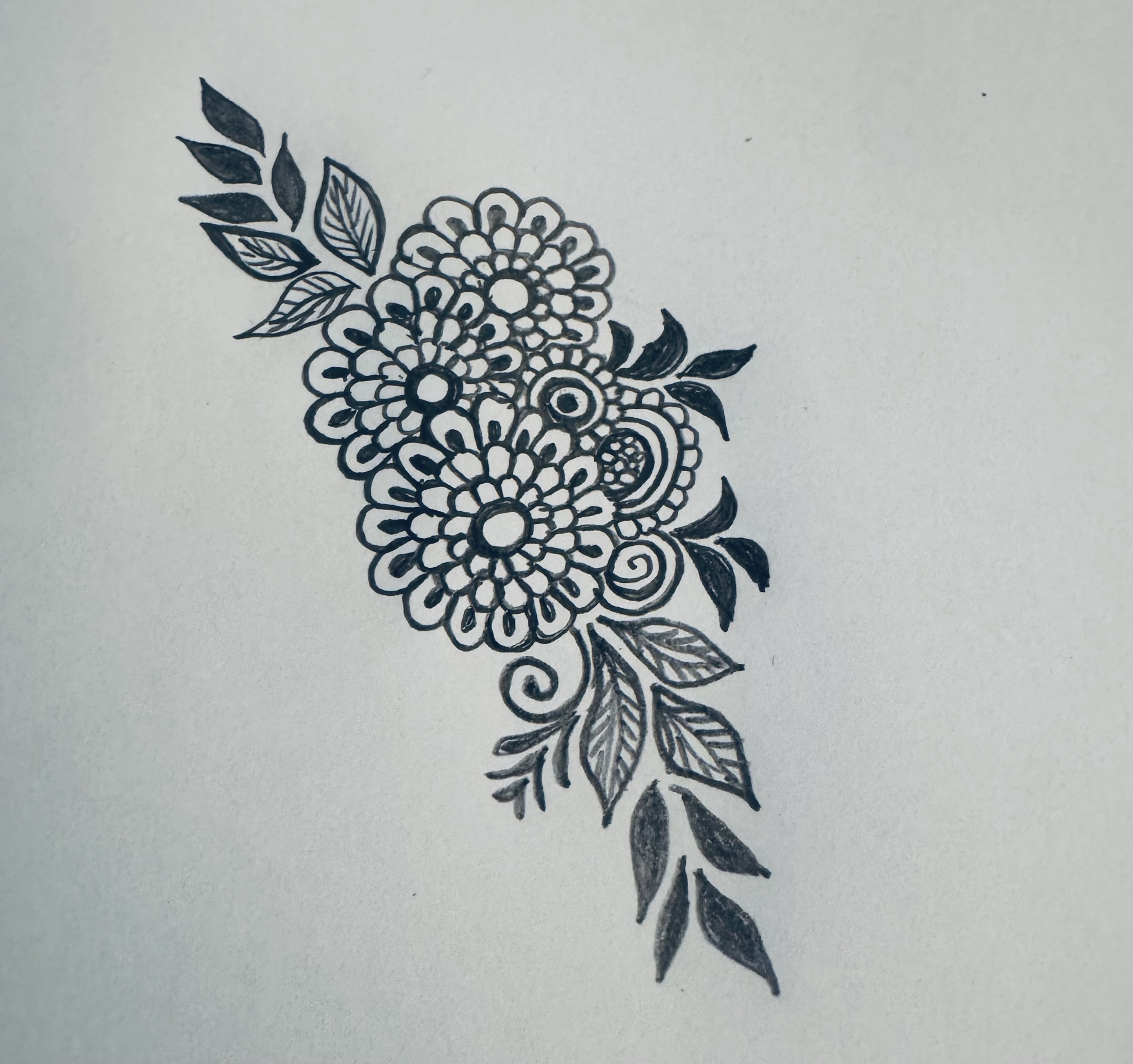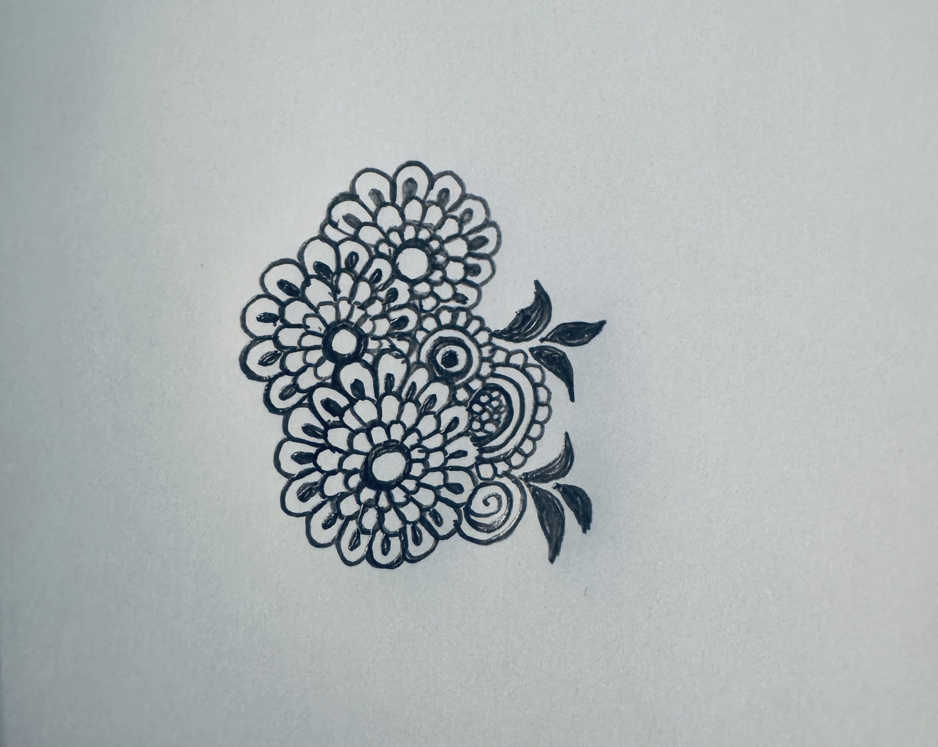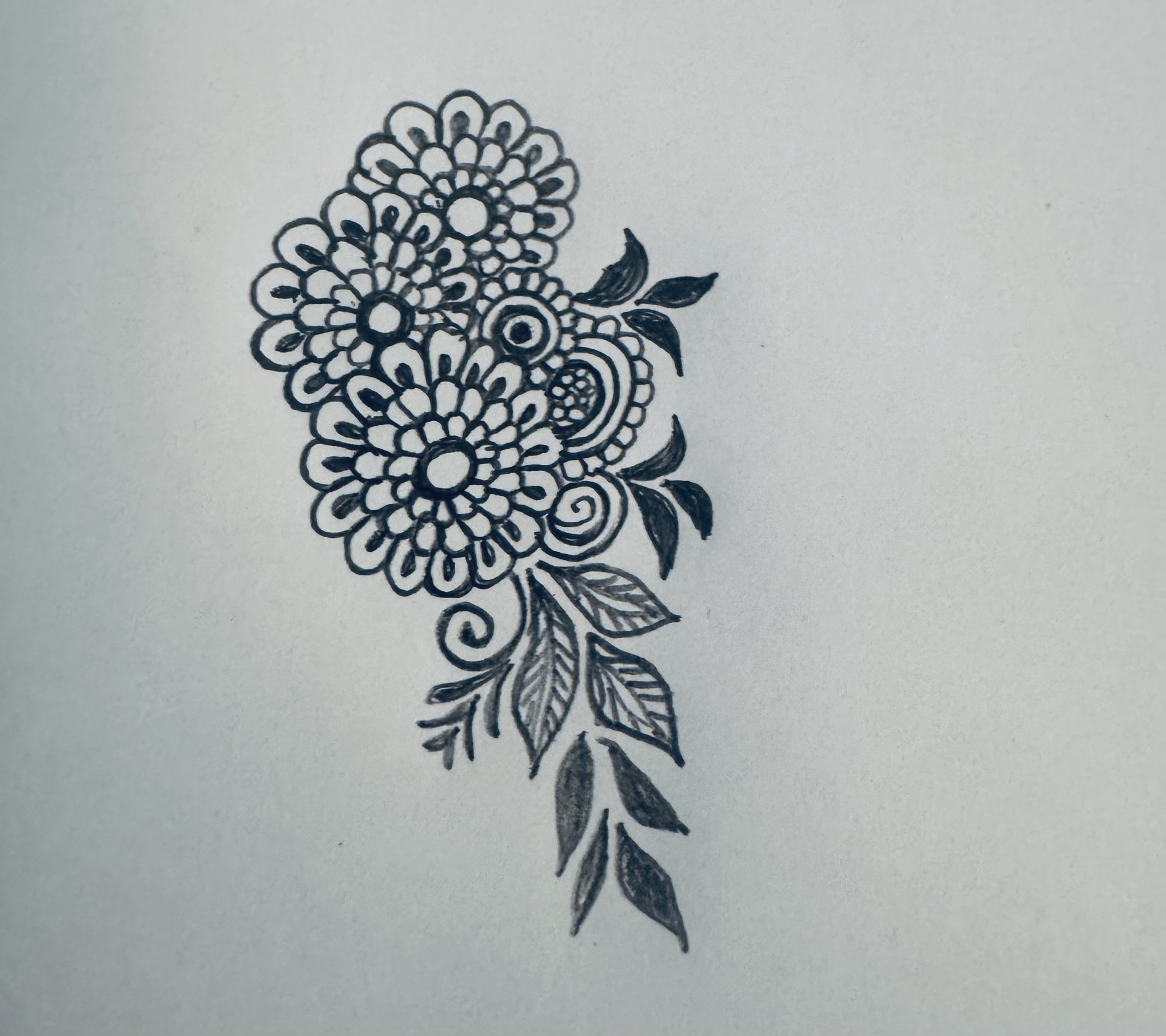 এরপর ফুলটির উপরের দিকে ঠিক একইভাবে আরো কিছু ফুল এবং কিছু পাতা এঁকে নিয়েছি।