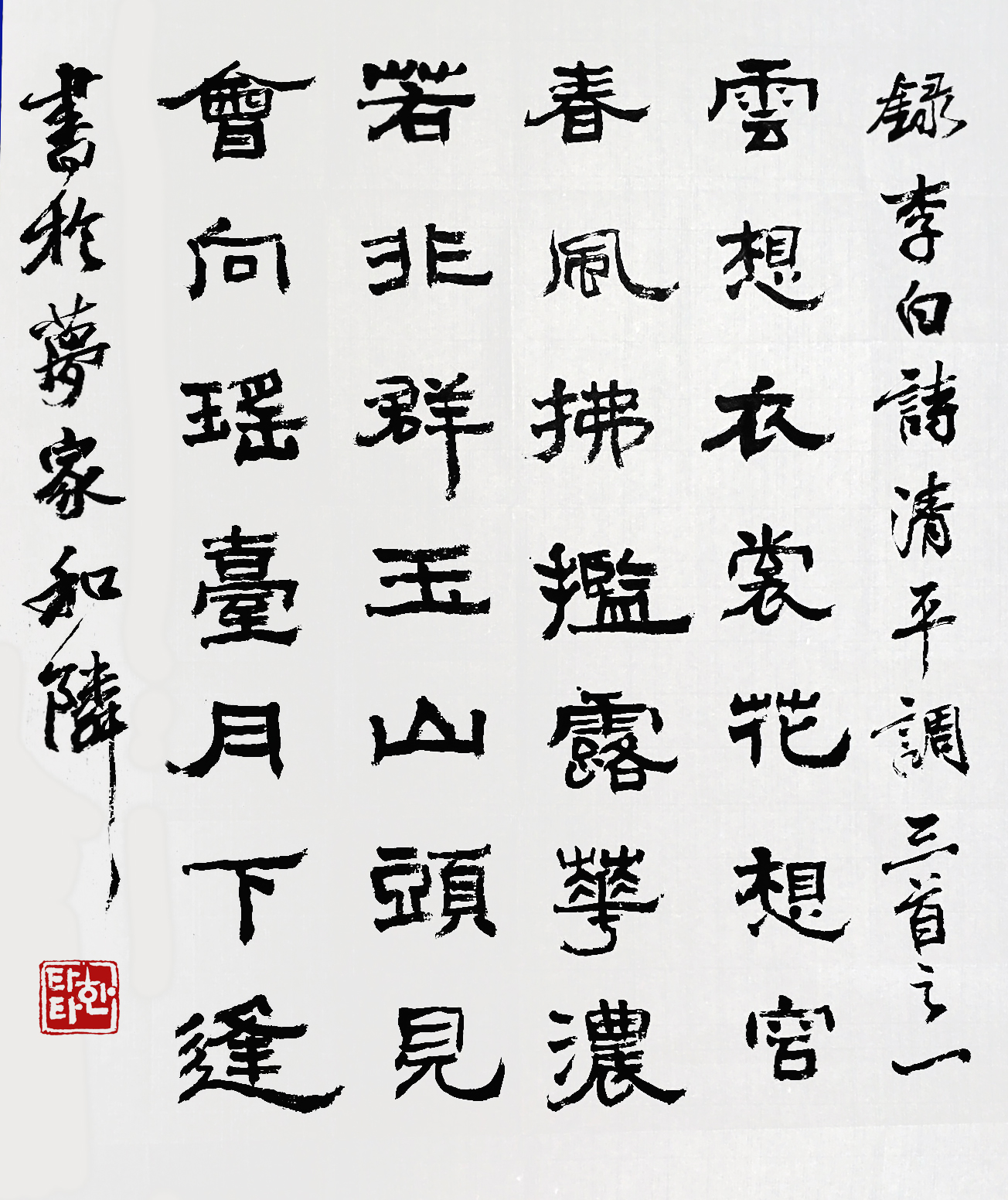 이백: 그렇습니다. 그런데 그 당시 필체로 붓으로 써서 가져오라는 겁니다. 그게 억지 아닙니까? 제가 시야 자신있다지만 붓 놓은지가 천년은 되었을 텐데...그래서 타타오님 도움 좀 받으려고 왔습니다. 그 청평조사를 붓으로 좀 쓱쓱...부탁 드립니다!