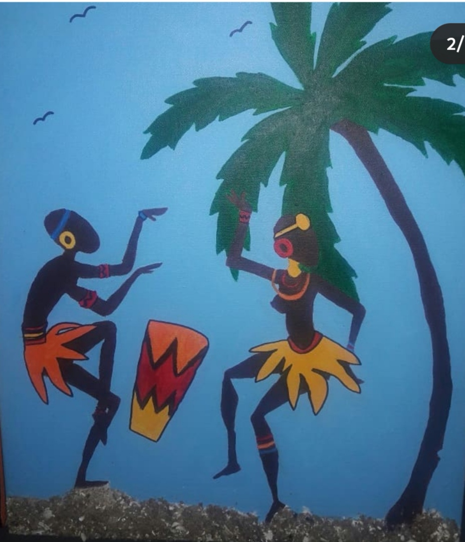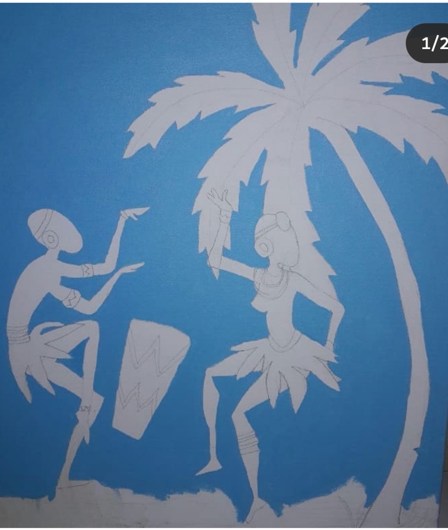 And as I imagined these dancers in my head- him beating his drum and she dancing excitedly to his happy beats... The colours to finish this painting came to me...