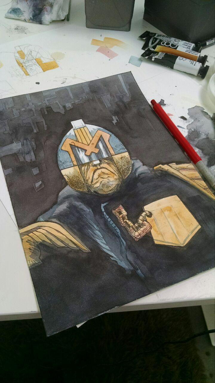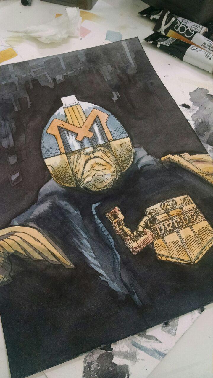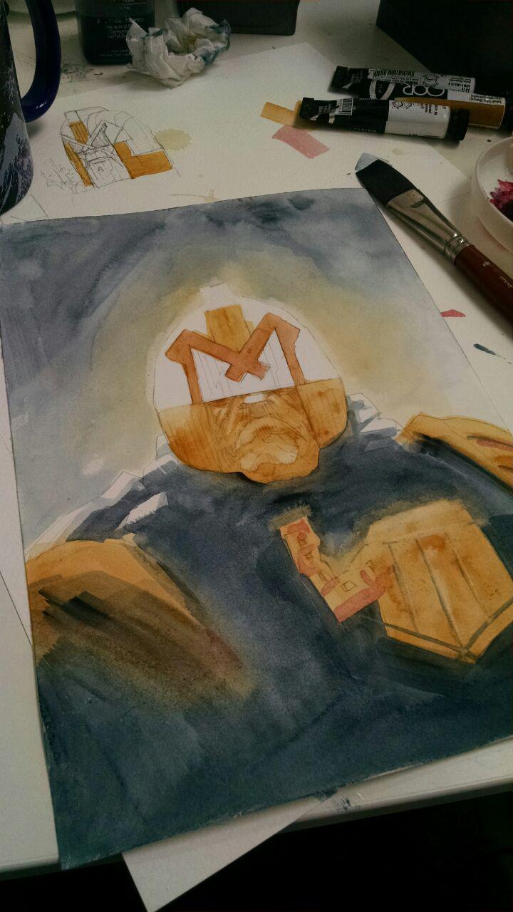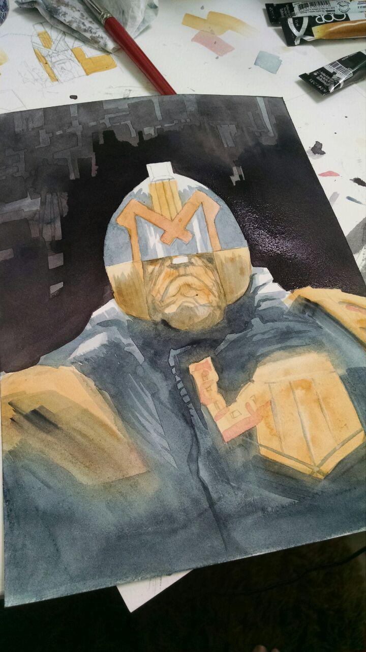 Here's my process of a Judge Dredd watercolor.