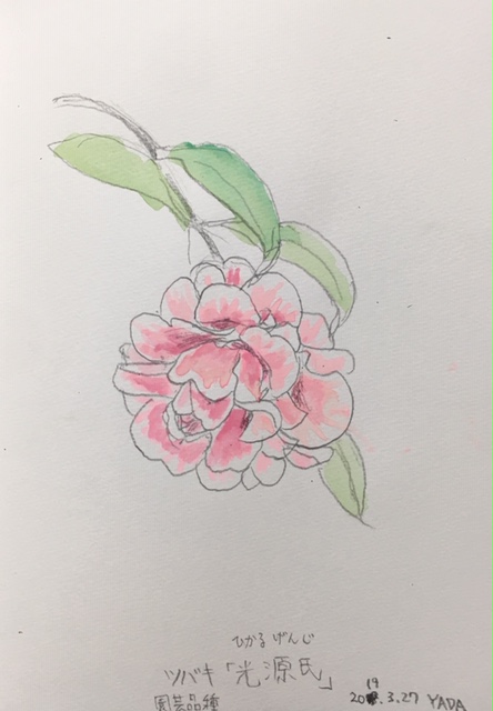 今日描いたのはハクモクレン、ヒヤシンス、ツバキ「光源氏」「日光」「月光」、シデコブシの6種です。