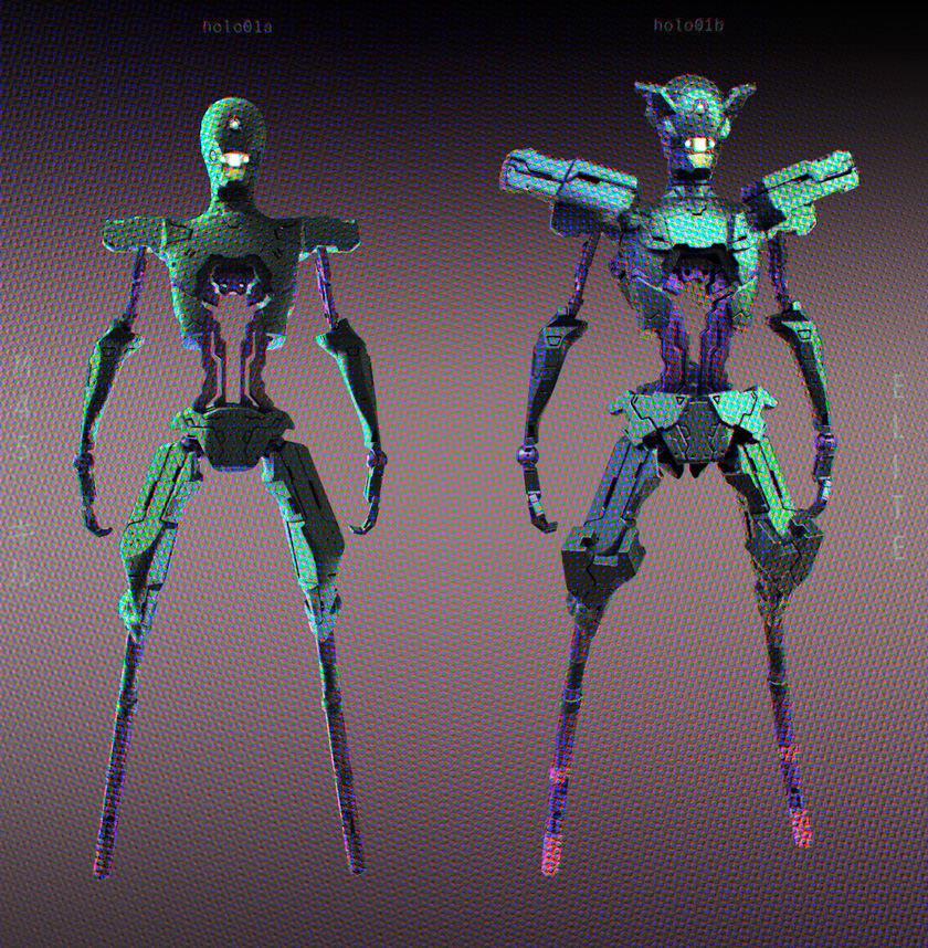 The thing that inspired me for the shape and form of these bots was a dream, about a robot that, while I was riding my bike pretty fast, I saw was coming my way running at a considerable speed. The roboto was big, so big it jumped over the electric lines like those hurdle runners. Was kind of impressive/scary/unsettling.