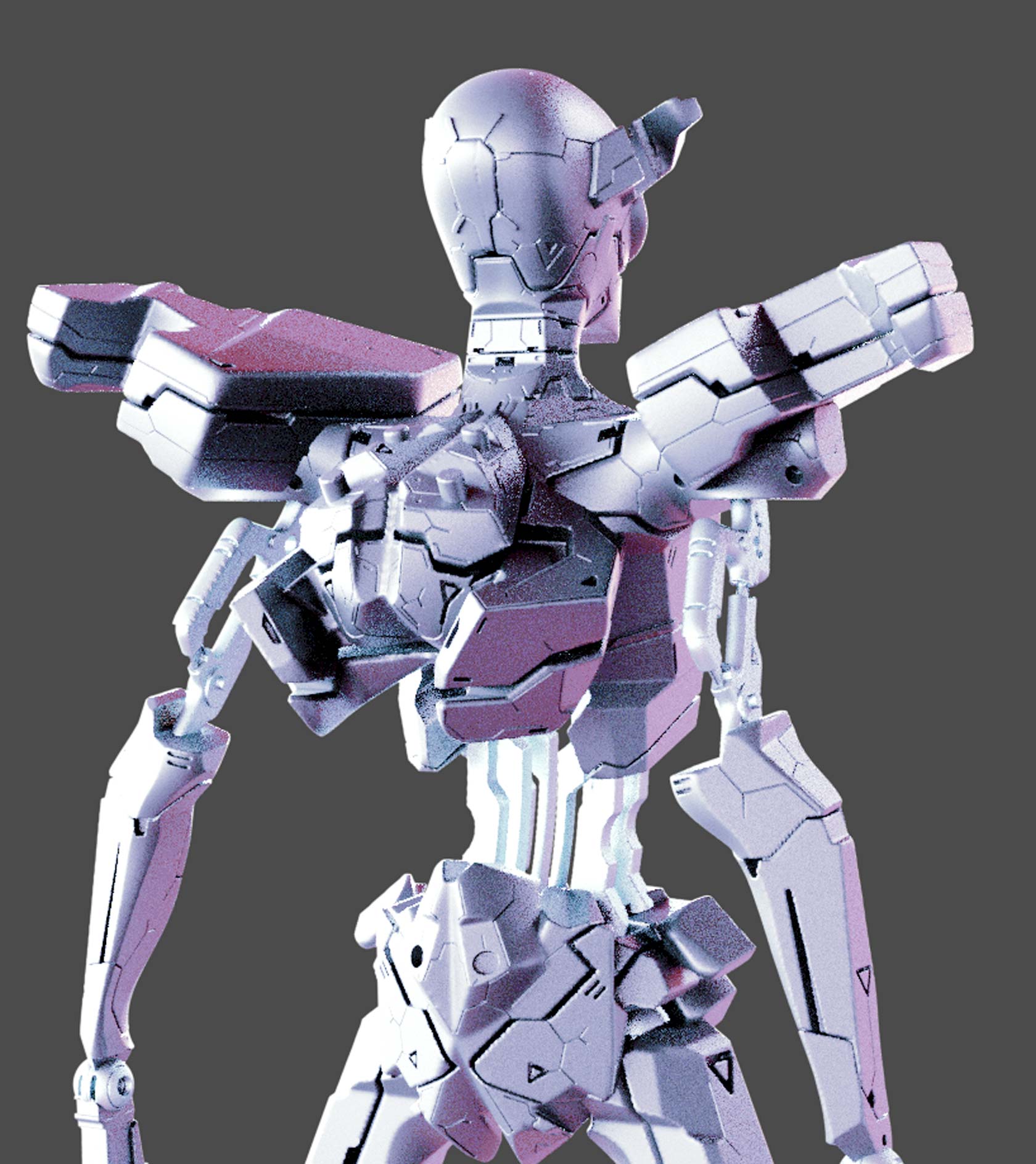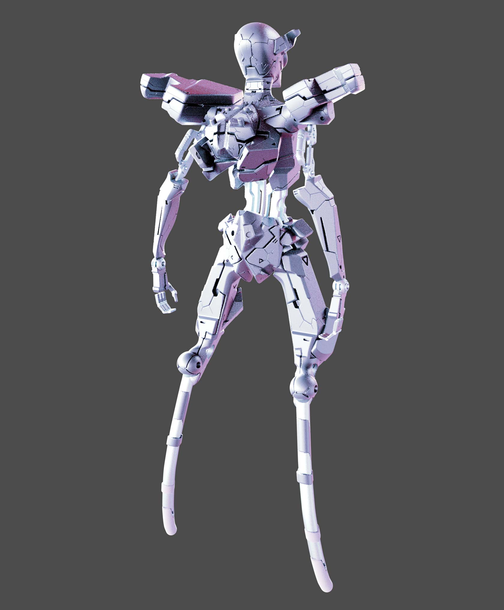 In the pose that shows the back one should be able to see the "jet-pack" but I went too dramatic with the lighting and those details were lost. I managed to process a little the image and here the details are more visible: