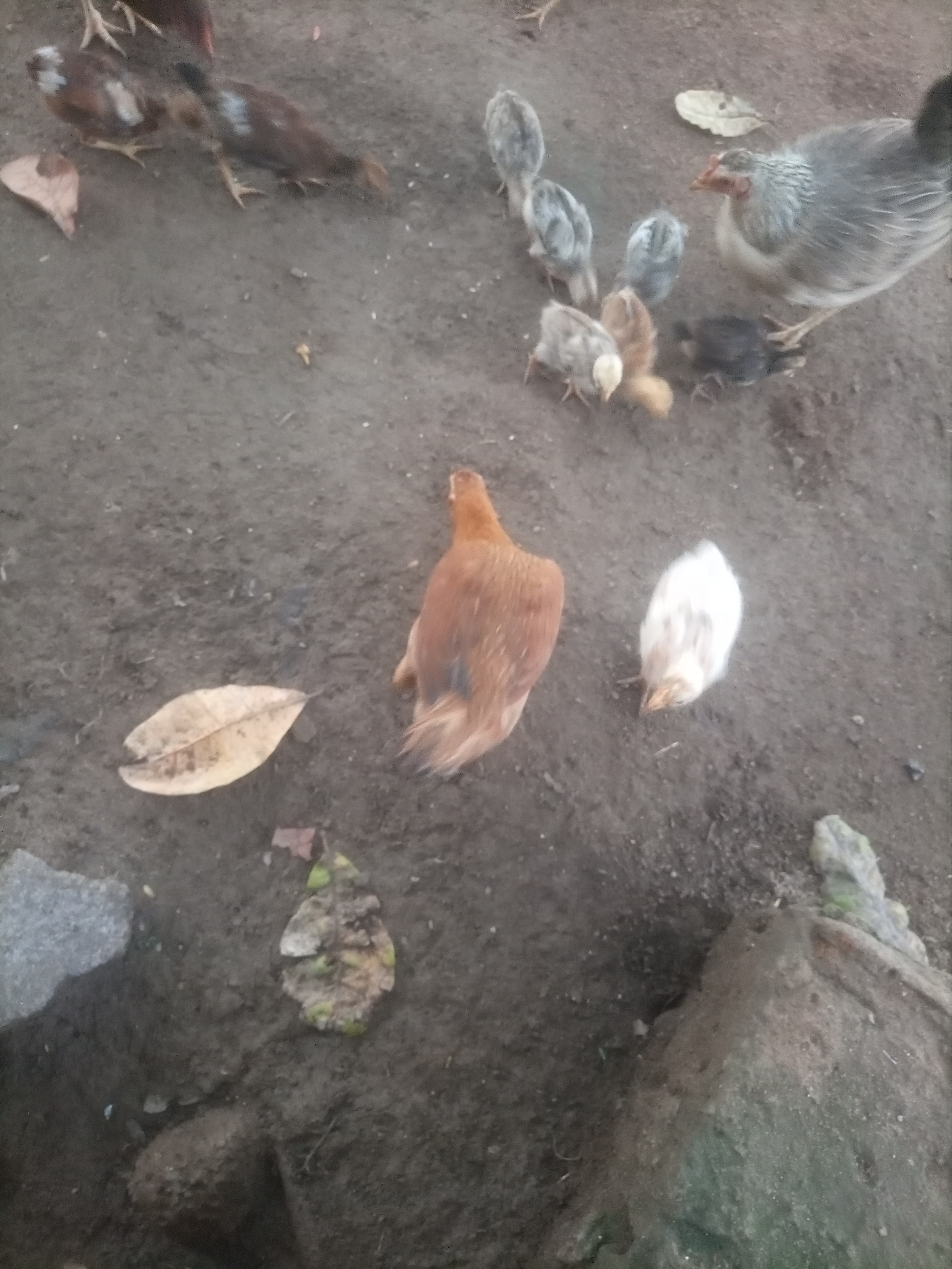 (There are two mother chickens there and that's not the chicken that has been taught too many lessons, she not around today I wonder why.