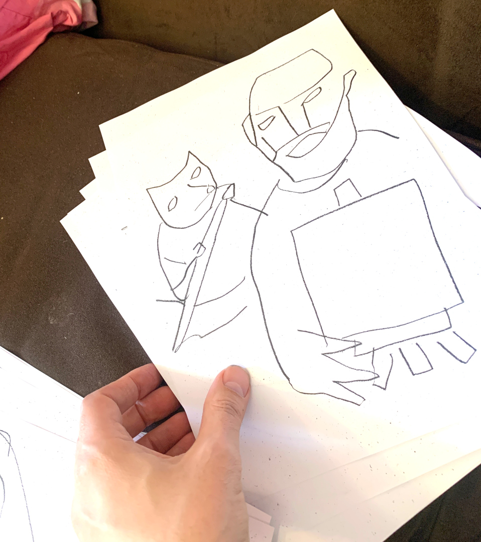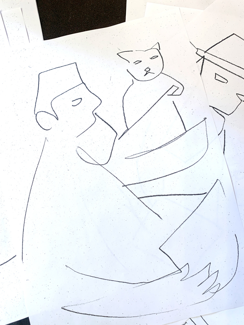 I did some drawings yesterday for my forthcoming Offgridlife Claymation series. Paintings and drawings based on @offgridlife ai claymation videos about Free Art Frees Art. So far, there's ten quick pencil outlines in 6B pencil on offwhite A4 size paper, and scans of each where I increased the contrast so I have some usable traces to work from when making the flat colour paintings.