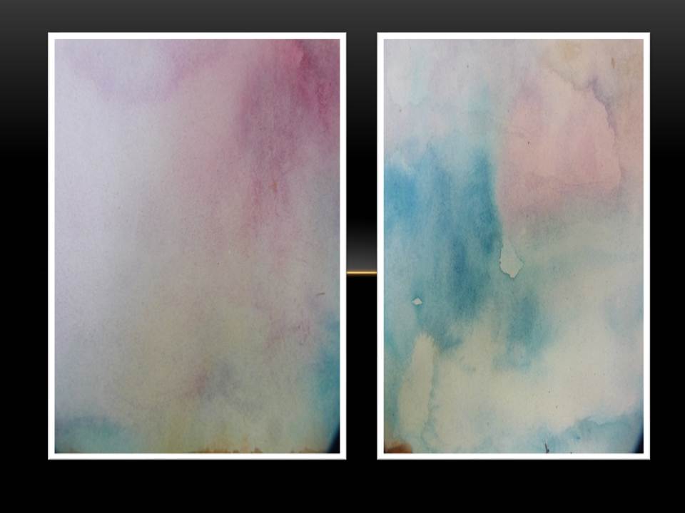 Las manchas de diversos colores (magenta, violeta y azules), en acuarela los cuales se desplazaron en el soporte, por medio de la técnica de la aguada.