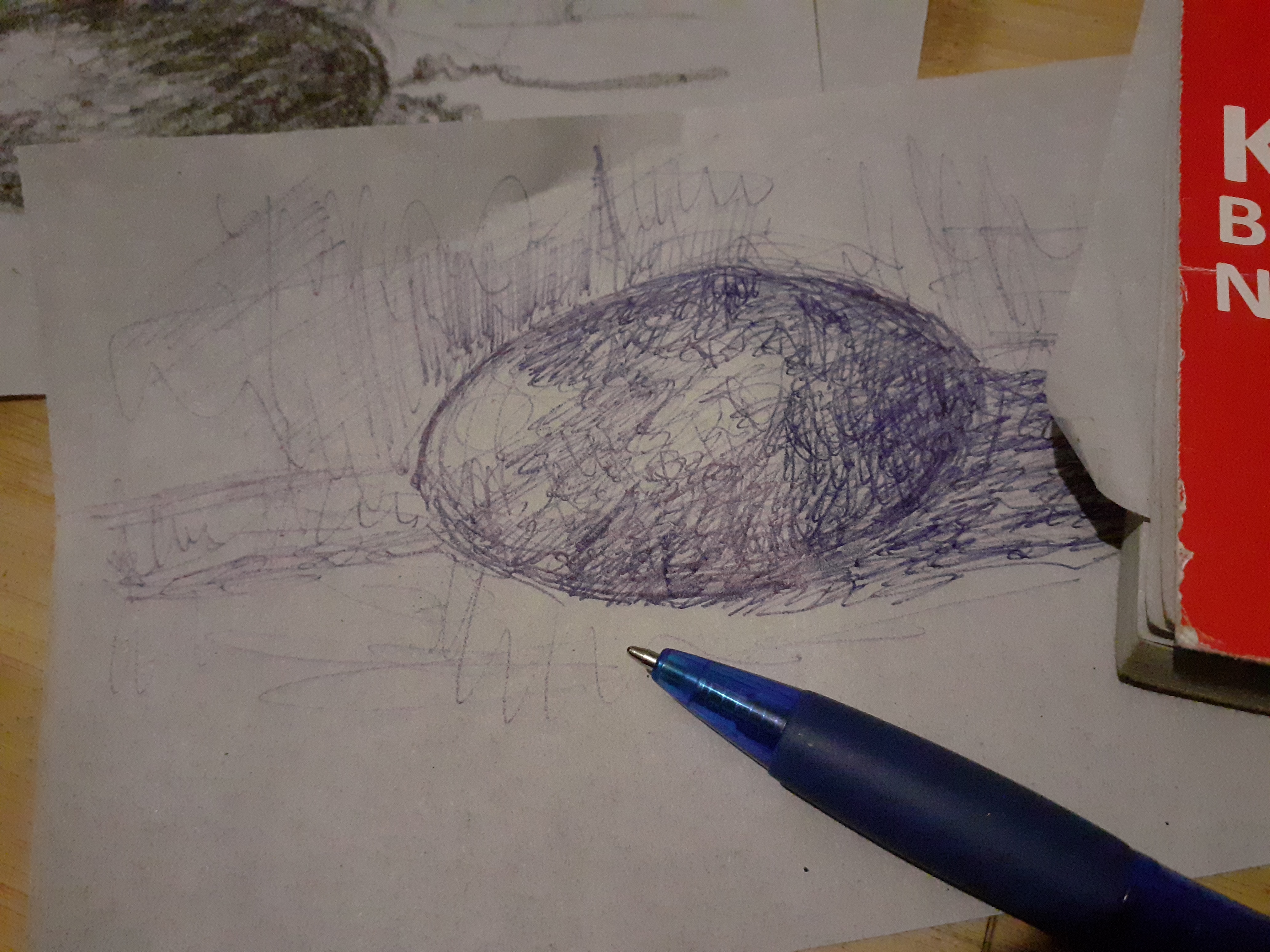 Greetings to all artists and art lovers. Today, I tried to draw an oval shape using the scribbles technique. In which, I tried show the spotlight on upper right side of the oval shape and the lower left side shading with line to show its oval shape.