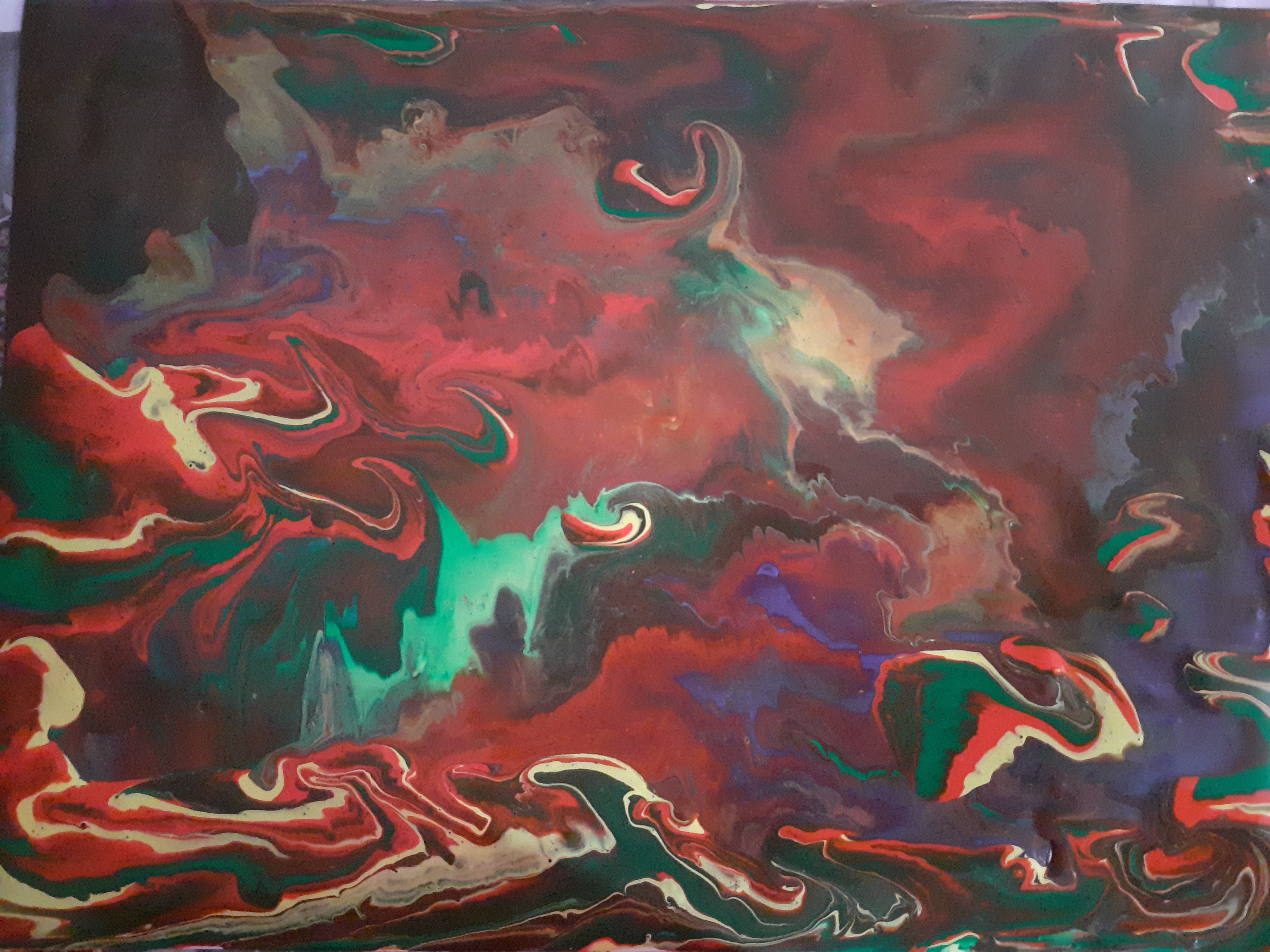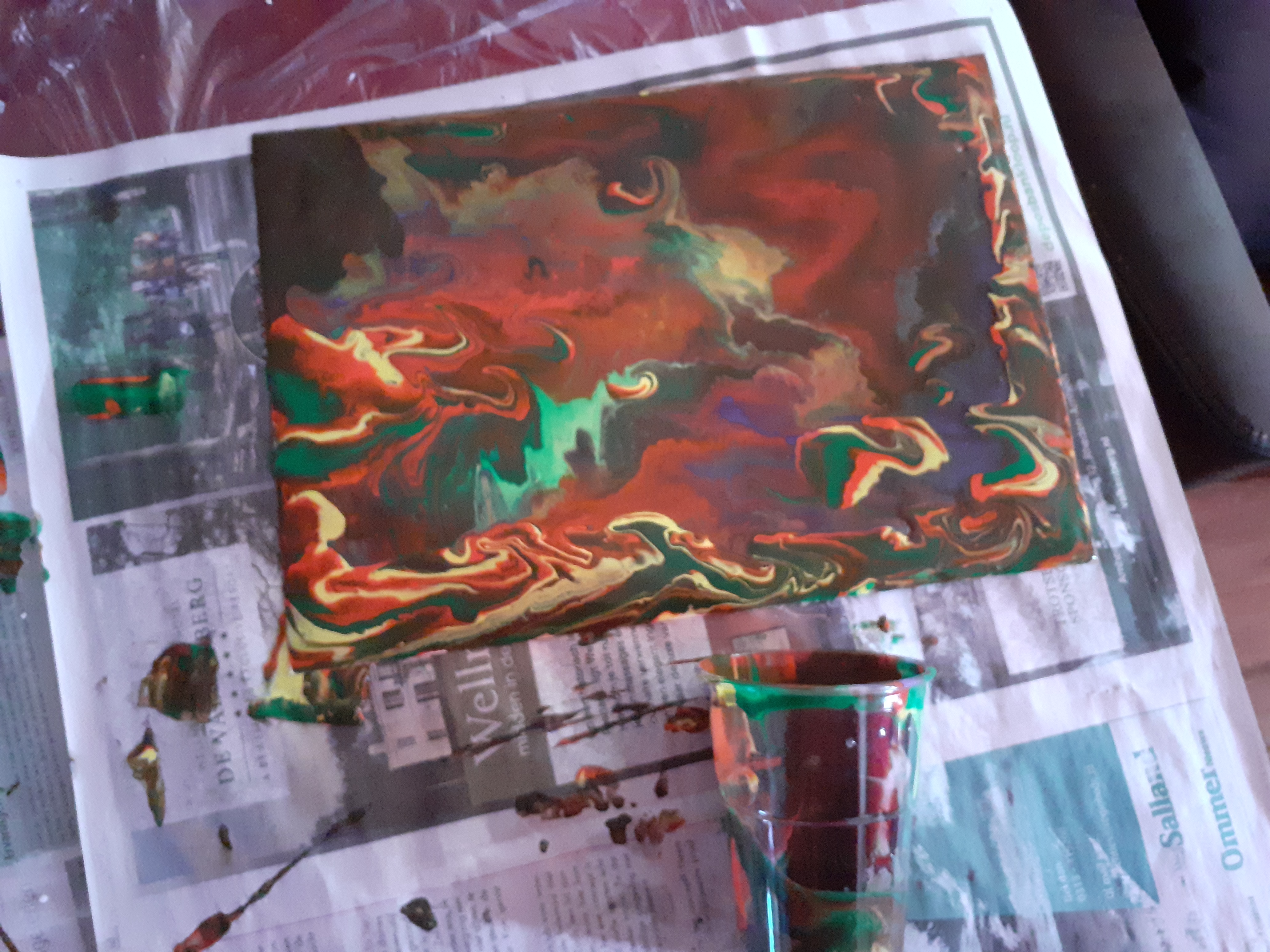 I poured it on the paper (watercolour + gesso) and tilted it.