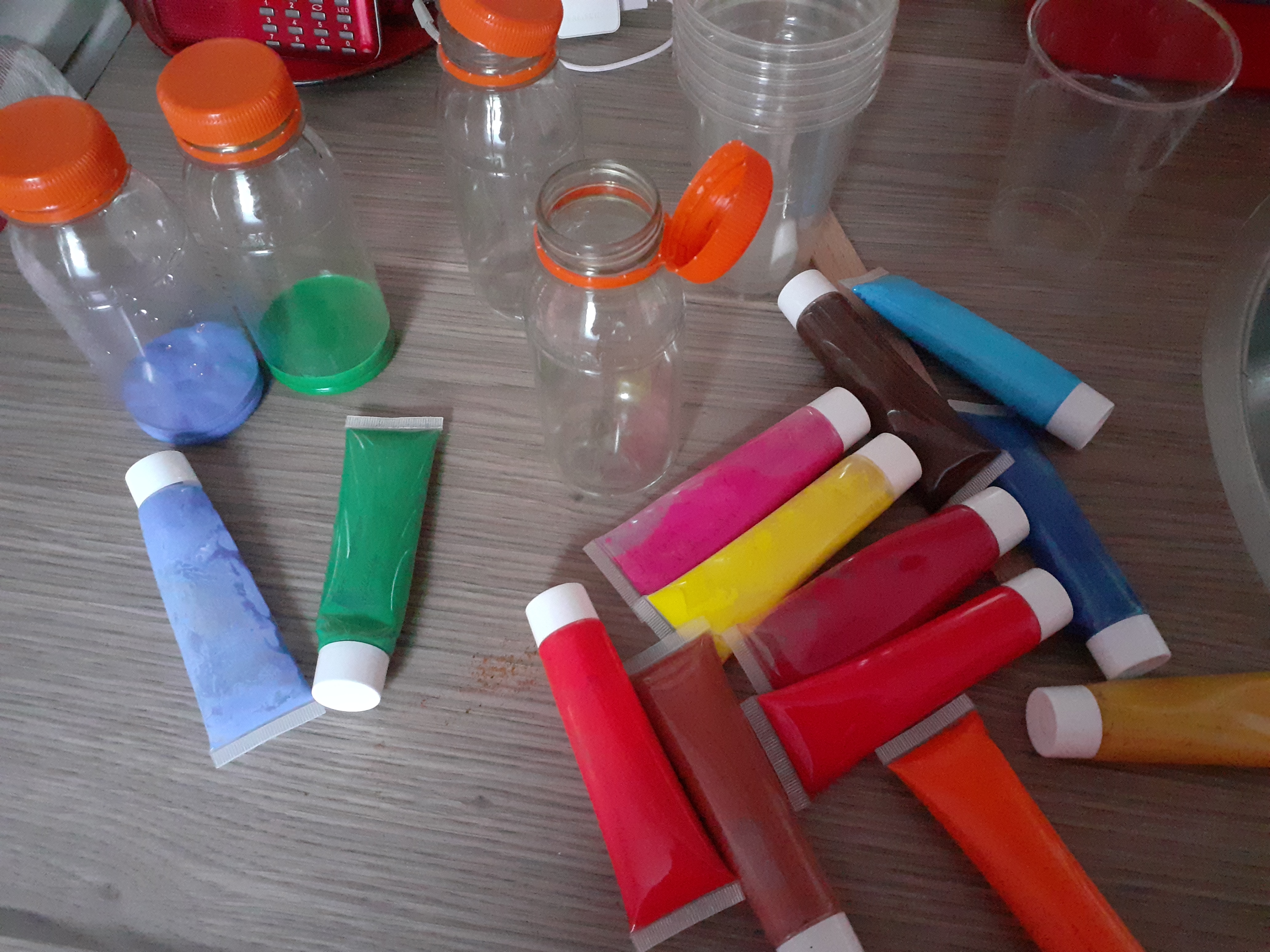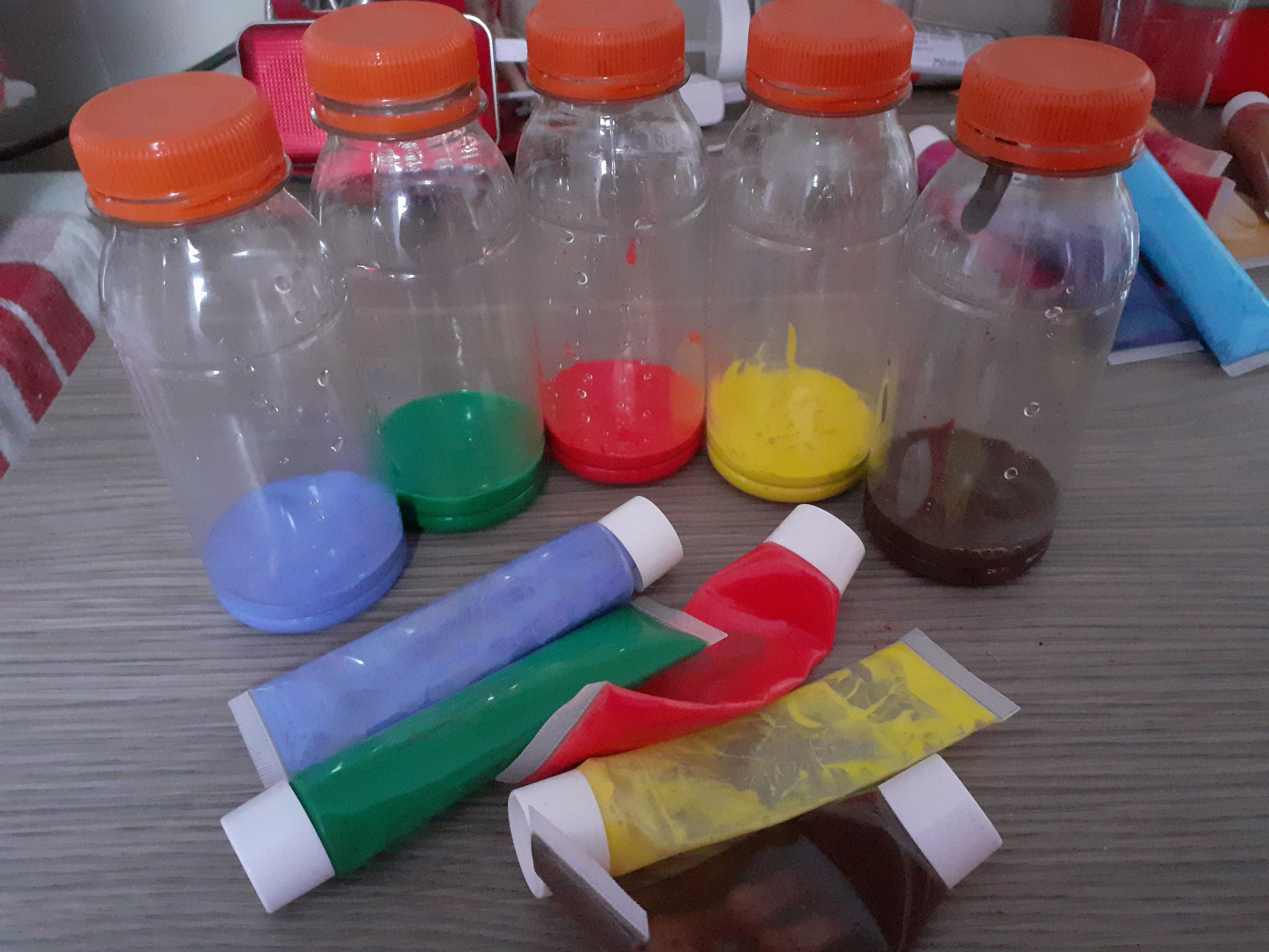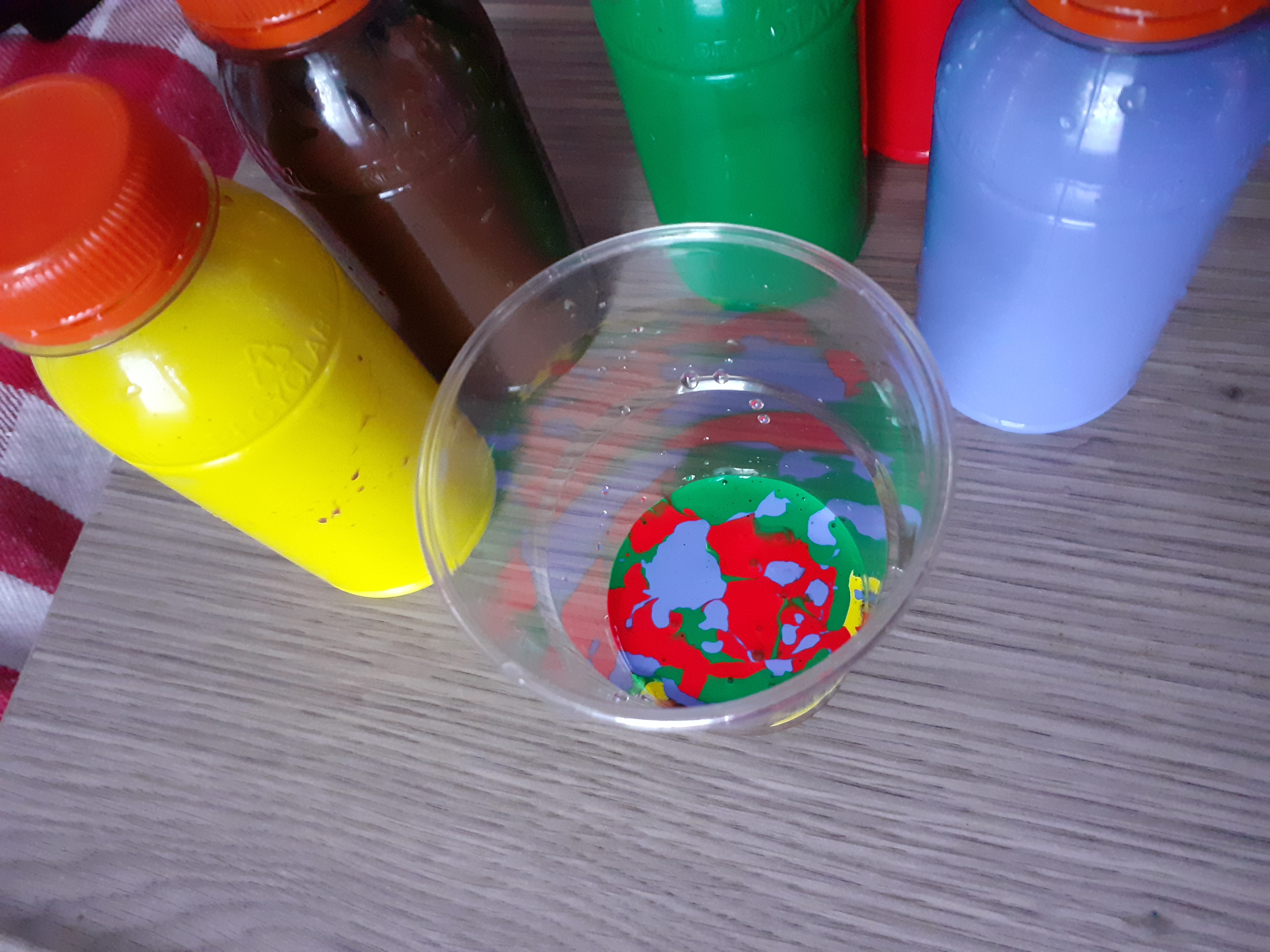 If you pour the paint directky on the canvas you can save the pouring in a cup. You can aldo pour in a mould like a toilet paper roll or a biscuit mould.