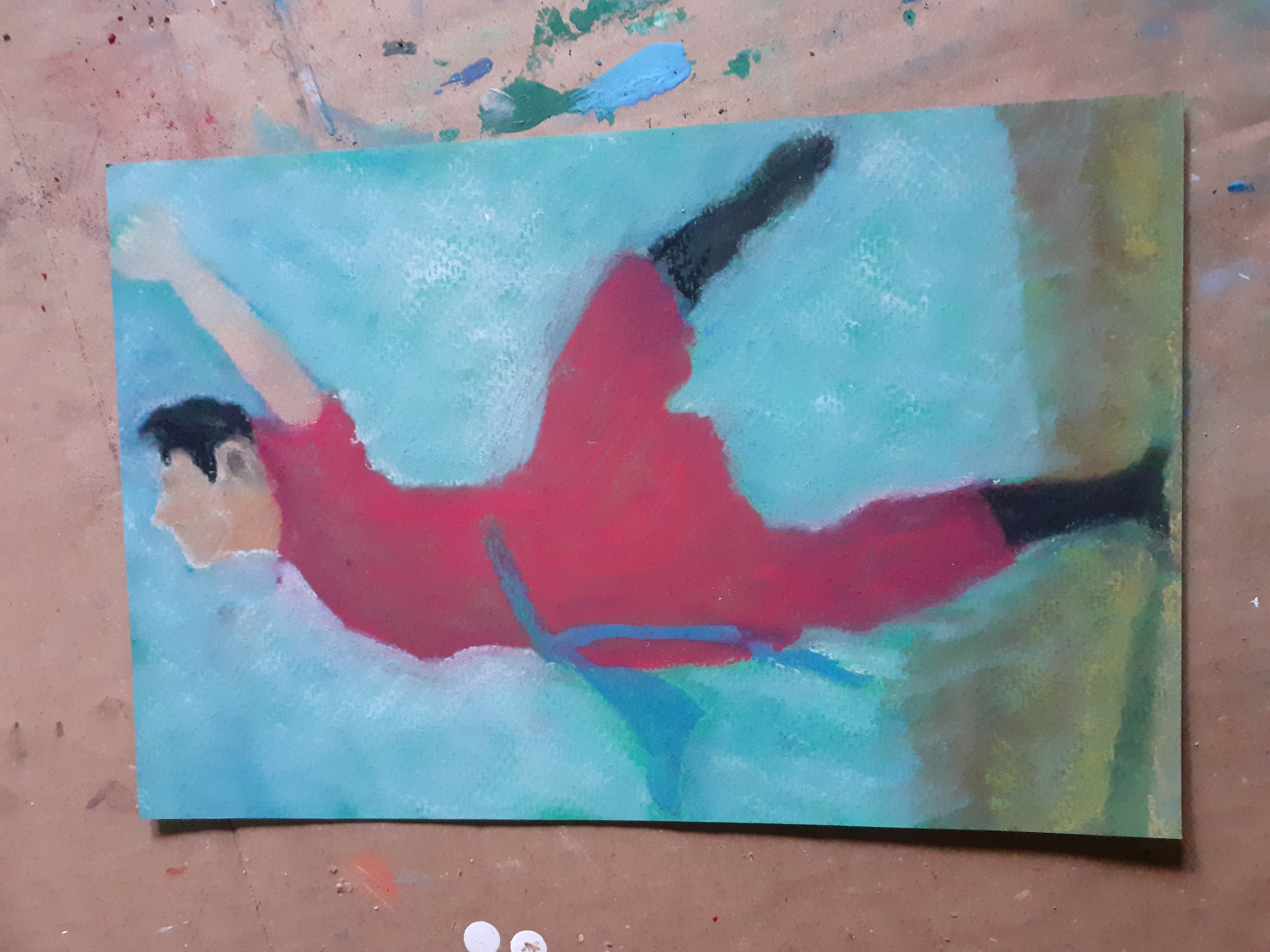 Bruynzeel: And then there are the pastel pencils. An expensive box. I tried them out on this paper straight away. Sketching works fine, but once you’ve painted with Rembrandt soft pastels, you can’t add anything else with these pencils. I find this a major drawback (although you can, of course, add details with chalk as well, provided the chalk cooperates).