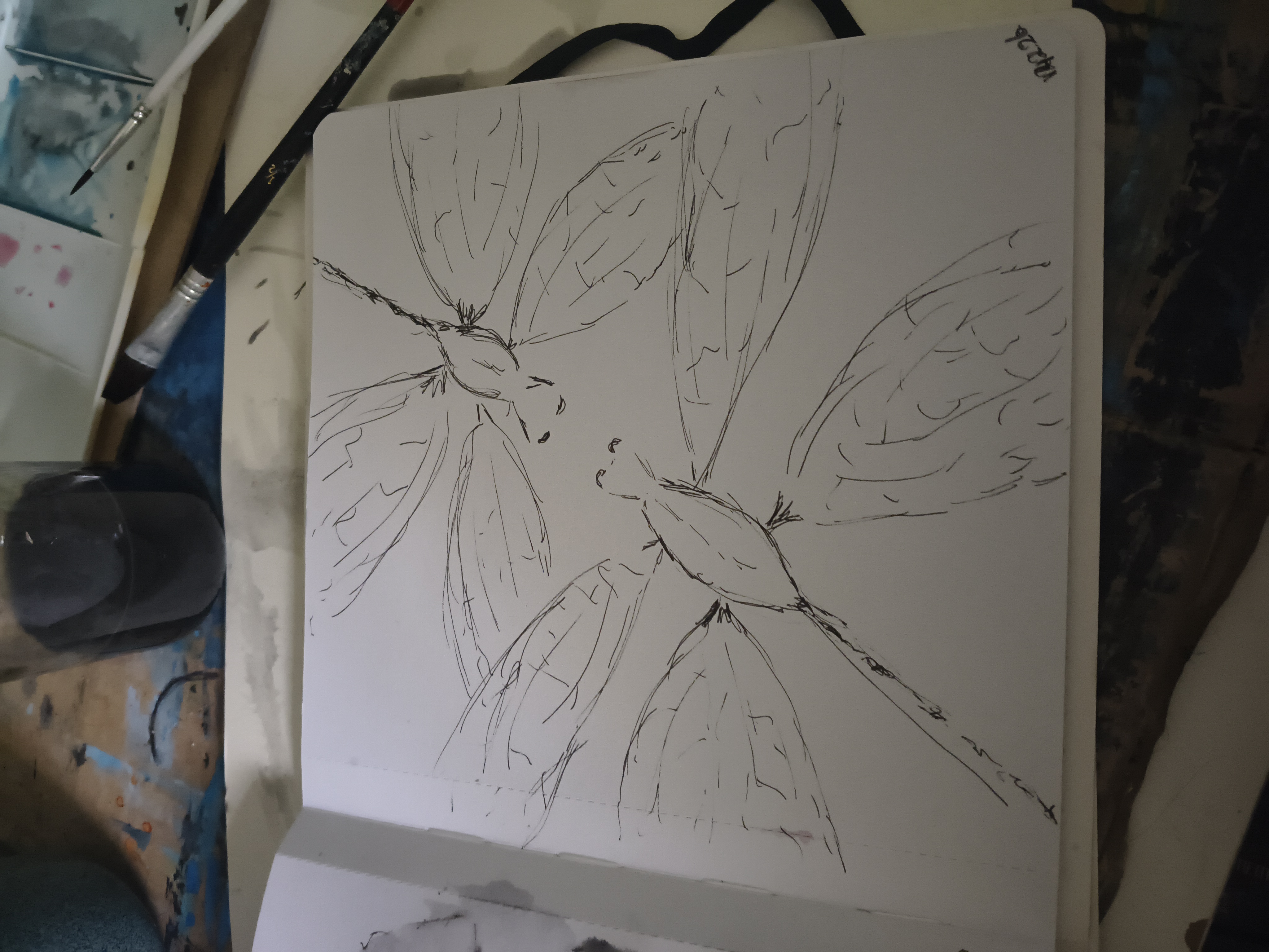 What can I say, she said that black and white is nice, but that I should work with more colours, and then she gave the example of a crying clown. I'm not a fan of clowns at all, so I mentioned that, but I made it anyway because, after all, you have to try things you don't like sometimes... Not that I've never done that before in my life, haha. I have no idea if she thinks clowns are the most colourful thing in a person's life, but I don't like clowns and there are many other people who feel the same way, and I understand that even the Clinic clowns aren't really as appreciated as people make out. Fortunately, that scary Ronald McDonald clown has also disappeared. I added the Libelle because I was actually trying to do Libelle, so I think I just said, 'Let's put it on top, then I'll do them after all.