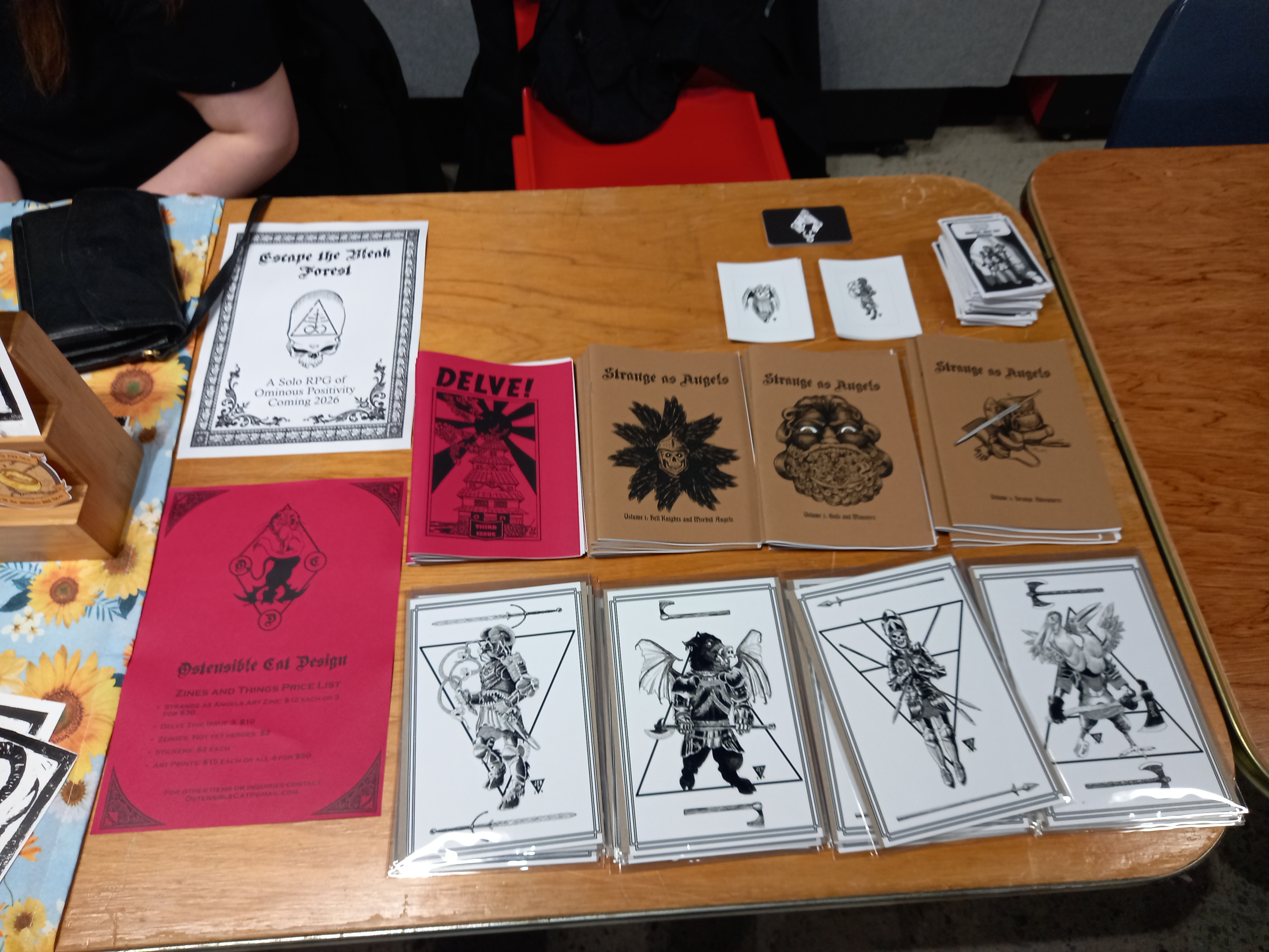 Godhead is a piece that I did for the second volume of my art zine, Strange as Angels Volume 2: Gods and Monsters. I had a lot of fun putting these art zines together. Last weekend, I attended Wellington Zinefest and had some of my zines on display. It was a great experience interacting with the community and talking and swapping zines with fellow zinesters. I definitely want to do that again. Here's a pic of my table from zinefest.