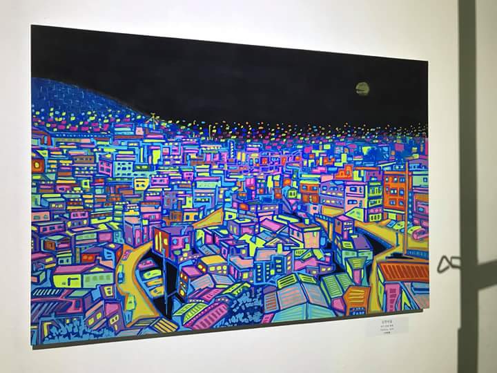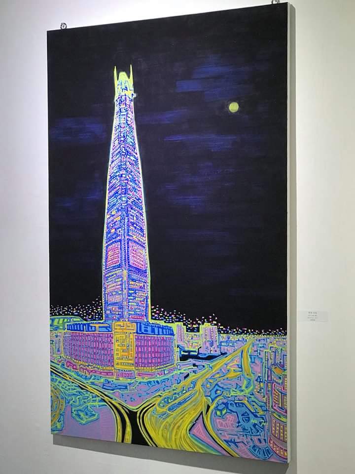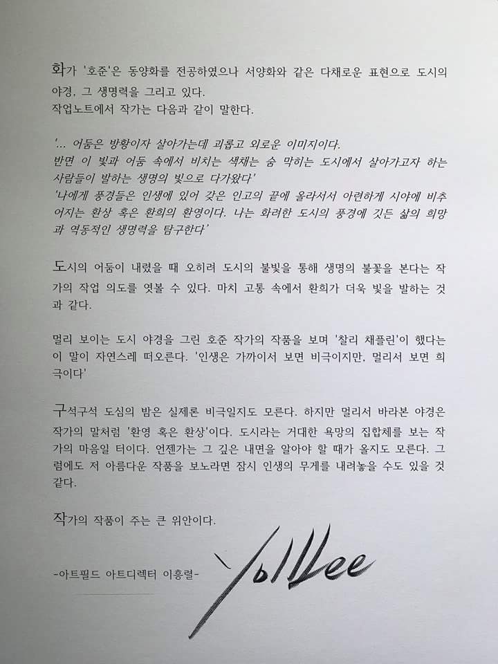 호준작가의 야경은 아까도 말했듯,많은것들이 얽혀있지만 단정하고 담백한 그” 만의 하늘이다.