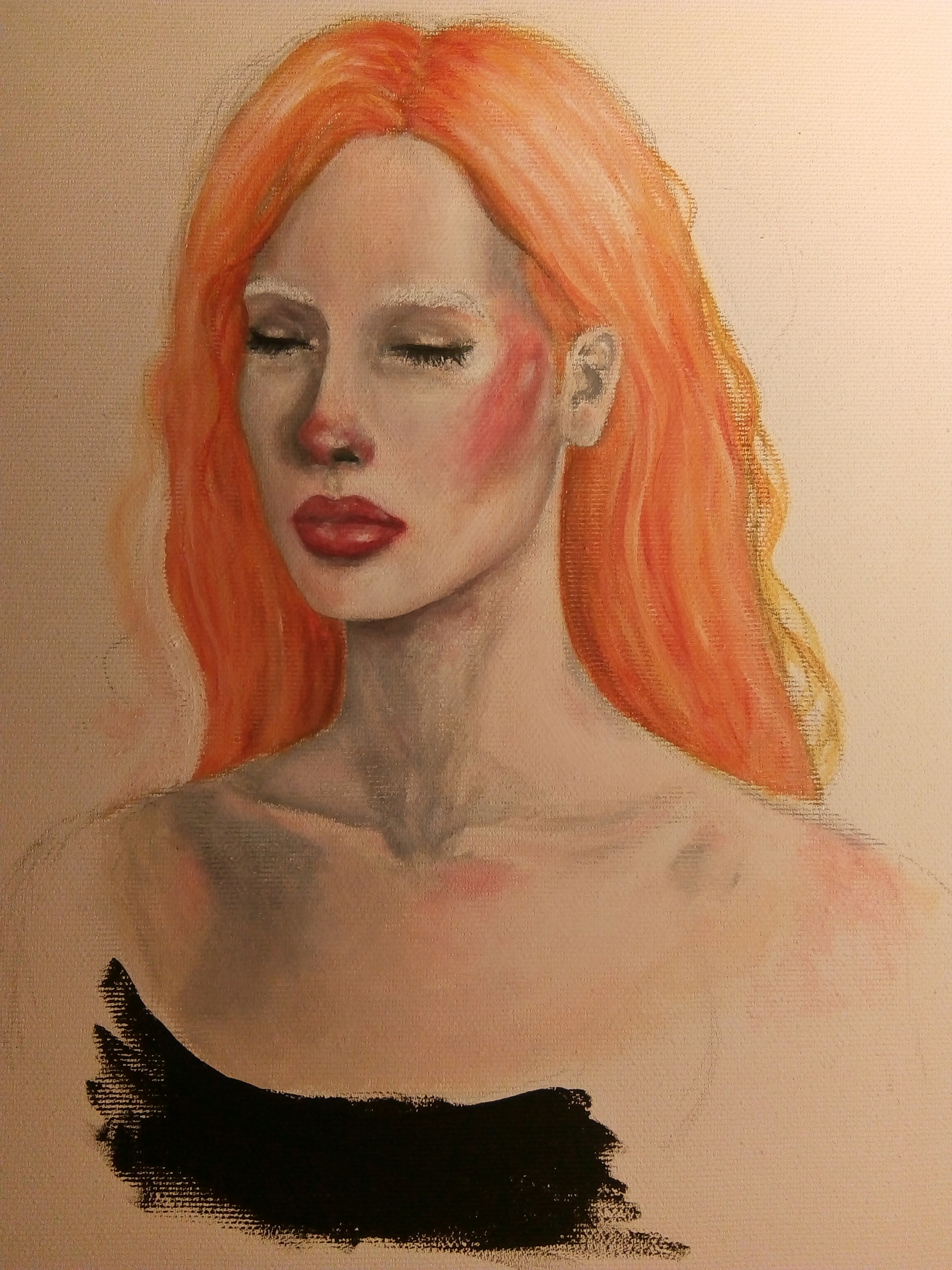 The difference in skin color compared to the final photo is big because I made the final photo under the light of day, and I took these two photos representing the process under the light of the lamp.