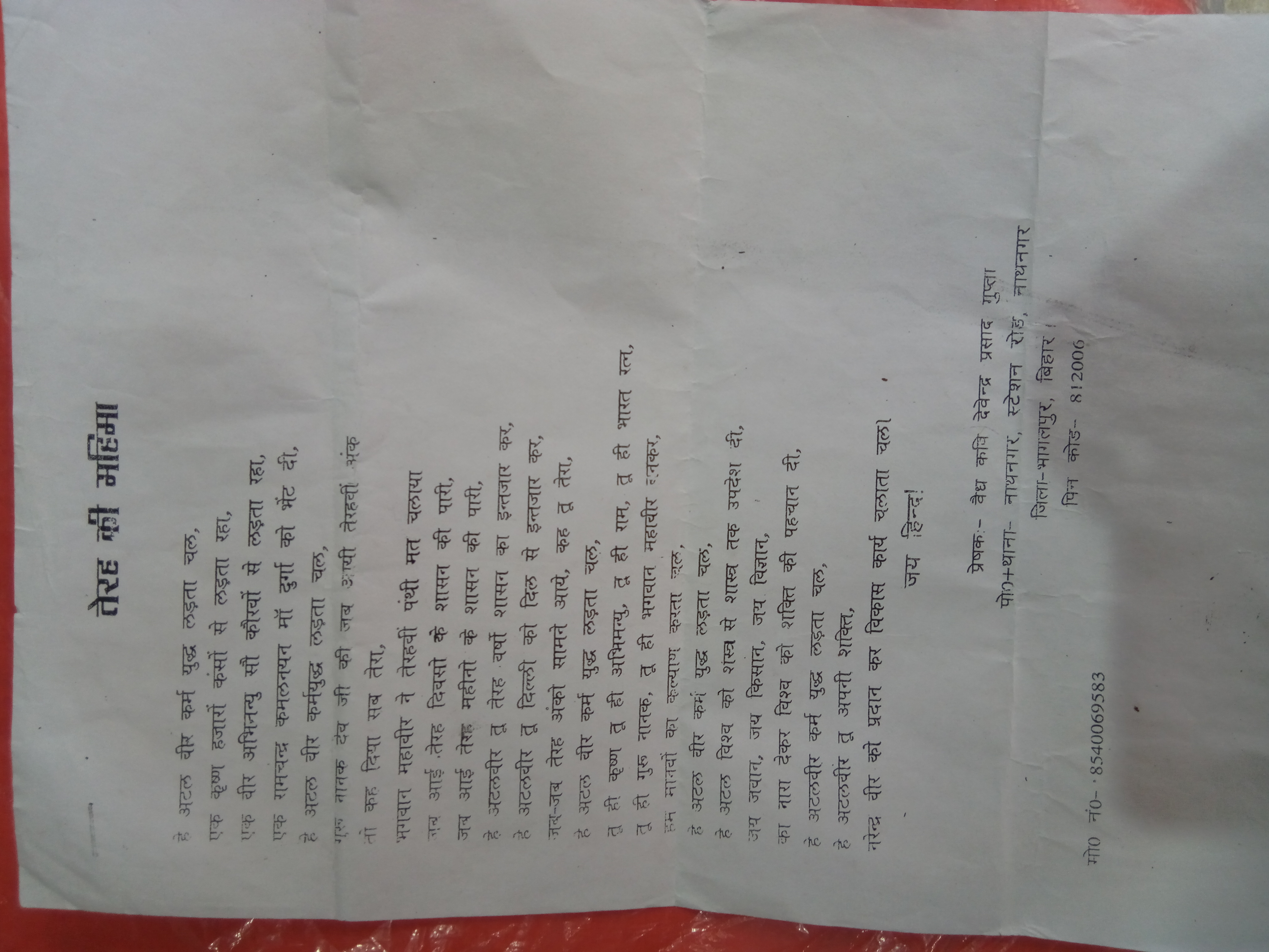 यह कविता मेरे एक चाचा जी ने लिखी है । मुझे अच्छी लगी इस लिए मैंने सोचा कि आप लोगों से भी सेयर कर लुं ।