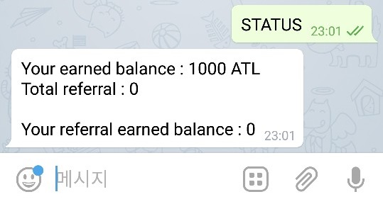 1. 텔레그렘 링크 클릭 http://telegram.me/atlantairdropbot?start=947362