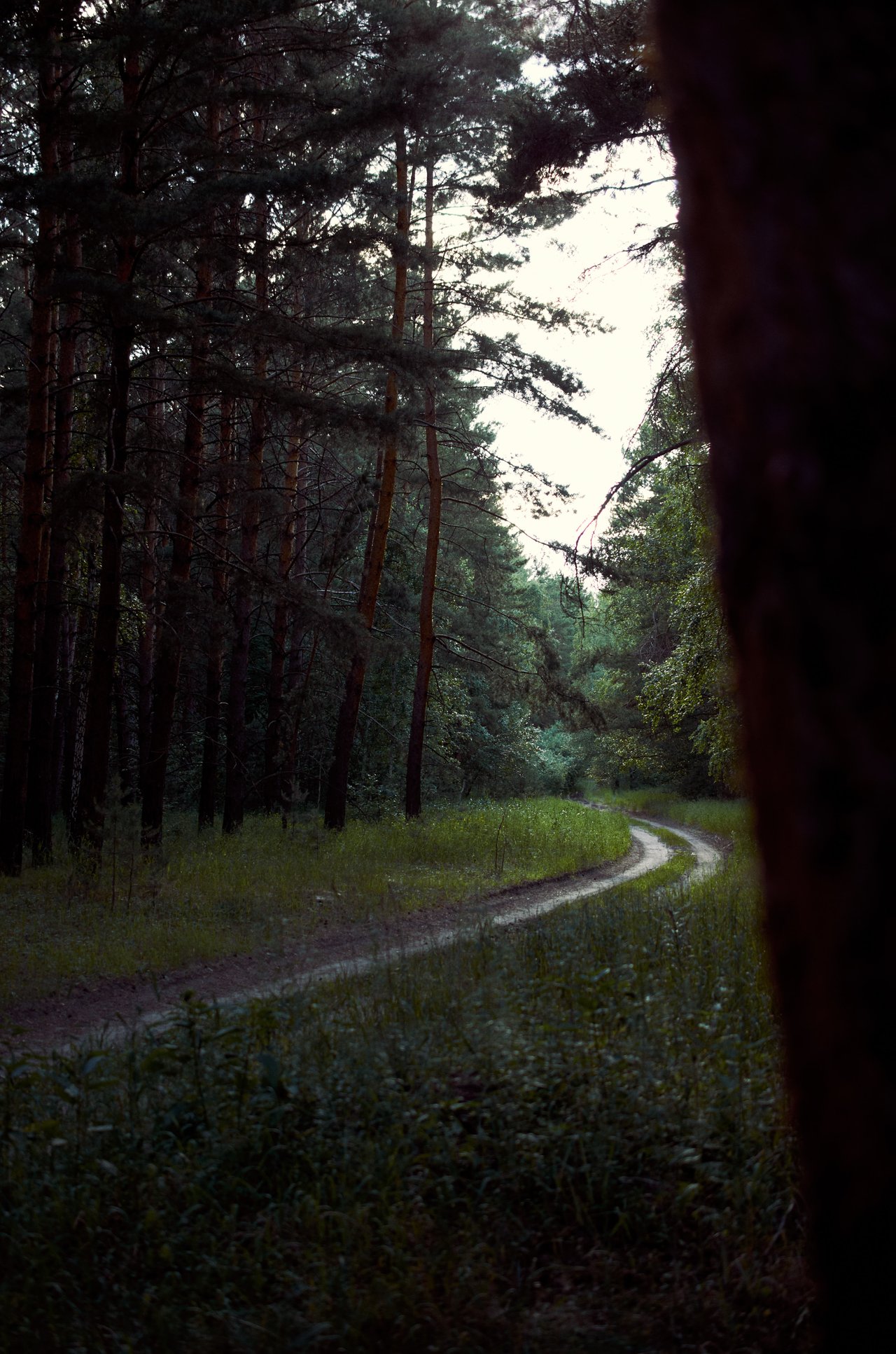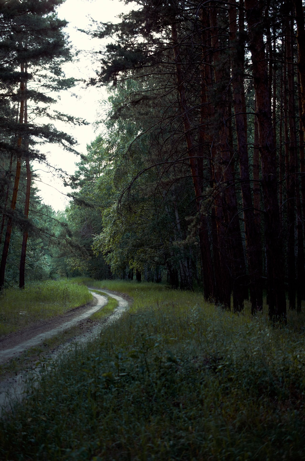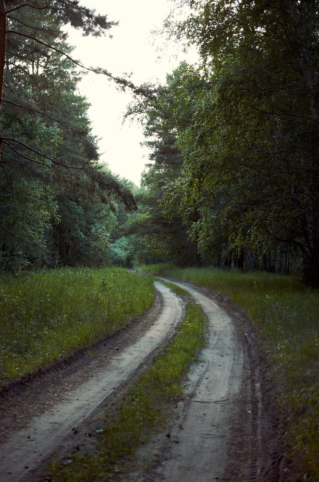 The road leading to the infinity of the forest is shown in my photographs. I feel a light breeze and a shadow from the trees. Around you can hear the rustling foliage from the trees and birds singing.