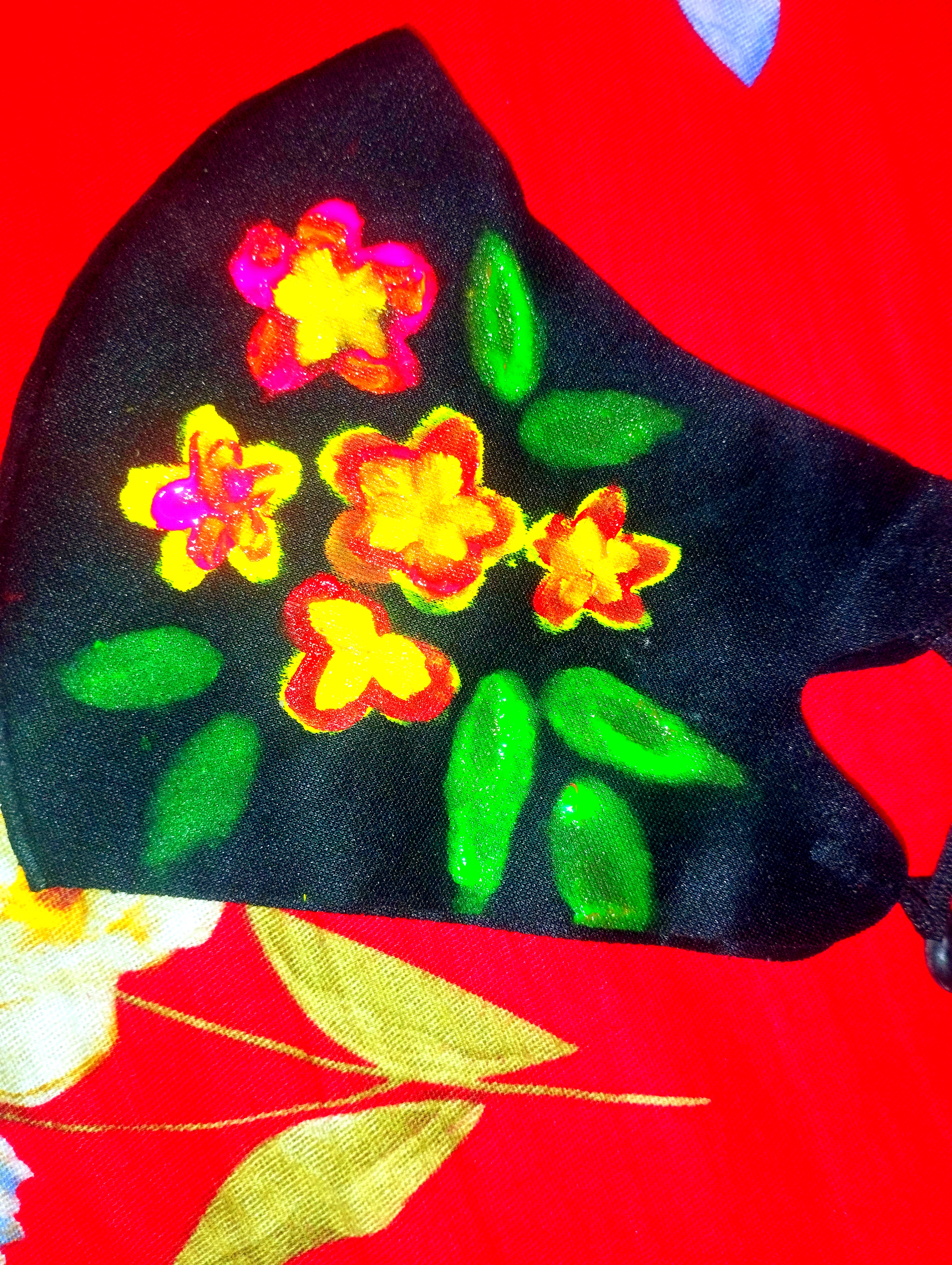আর্ট পোস্টঃ বাদ দেওয়া মাক্সের উপর ফুলের পেইন্টিং।